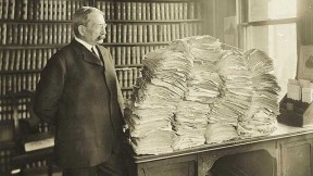His apparent age in this undated image suggests that Williston has posed with the draft manuscript or the notes for his great treatise on contracts.