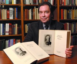 | William Sisler with the press's 1985 edition of William James's The Varieties of Religious Experience (left) and the reprint |