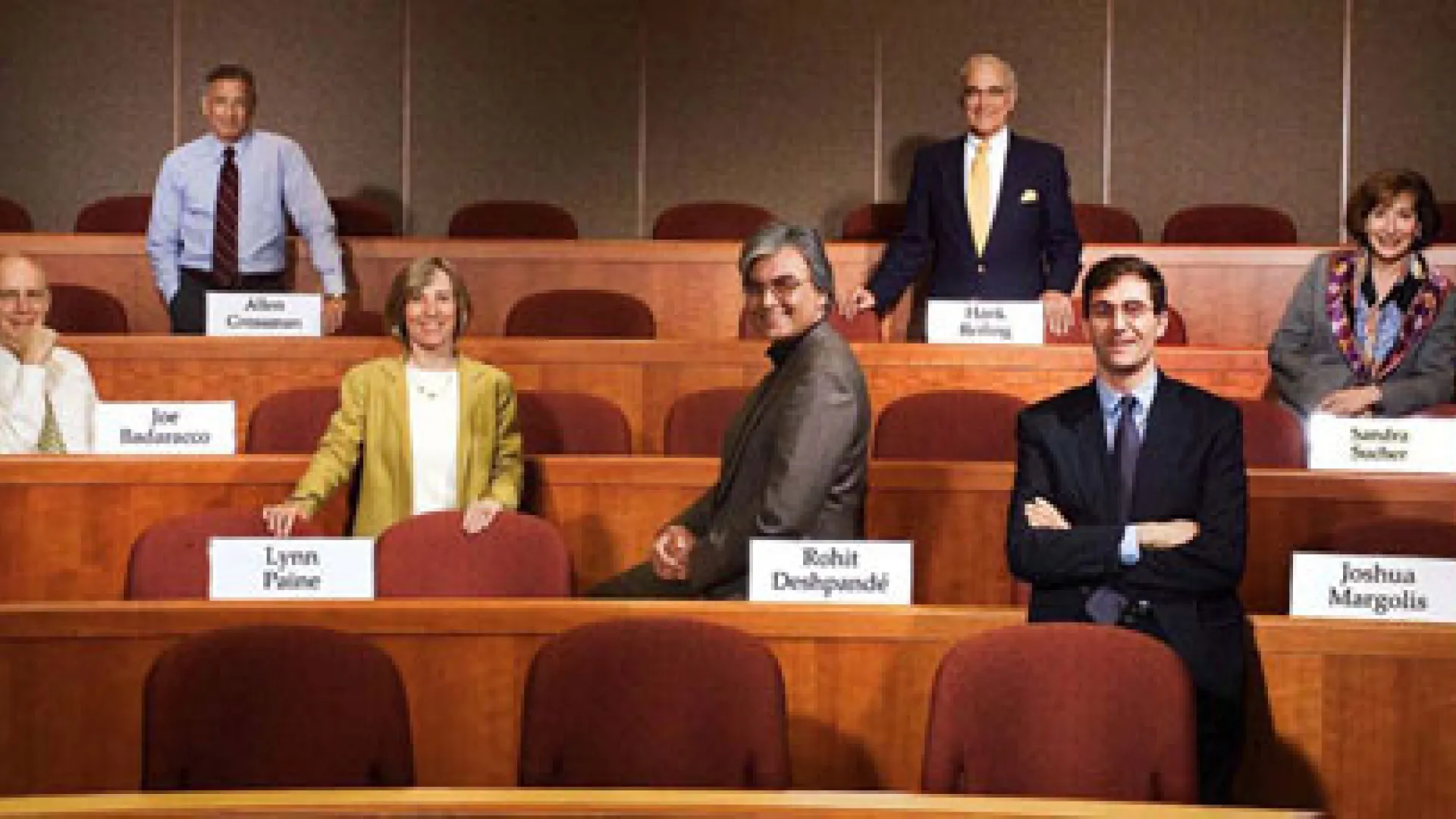 During the 1990s, Paine said, the original module and new ones raised awareness of “the ethics of decisionmaking,” but without providing a framework for action. And the need for informed action became more acute as greater use of technology and globalization of business raised more complex issues of law, divergent cultural norms, privacy, and other challenges. In 1998, she, Henry Reiling, and other faculty members examined the need to teach more about business law. Two years later, then HBS dean Kim B. Clark convened a task force on values and learning, chaired by Reiling. In 2001, the task force recommended a new required course that would integrate teaching about ethics, law, economics, organization, and leadership; that November, just as Enron’s troubles were emerging, a proposed plan for the course was circulated. Faculty approval followed in 2002, and during 2003, a dozen professors (subsequently joined by William George) led by Paine, Piper, and Nitin Nohria created the syllabus.