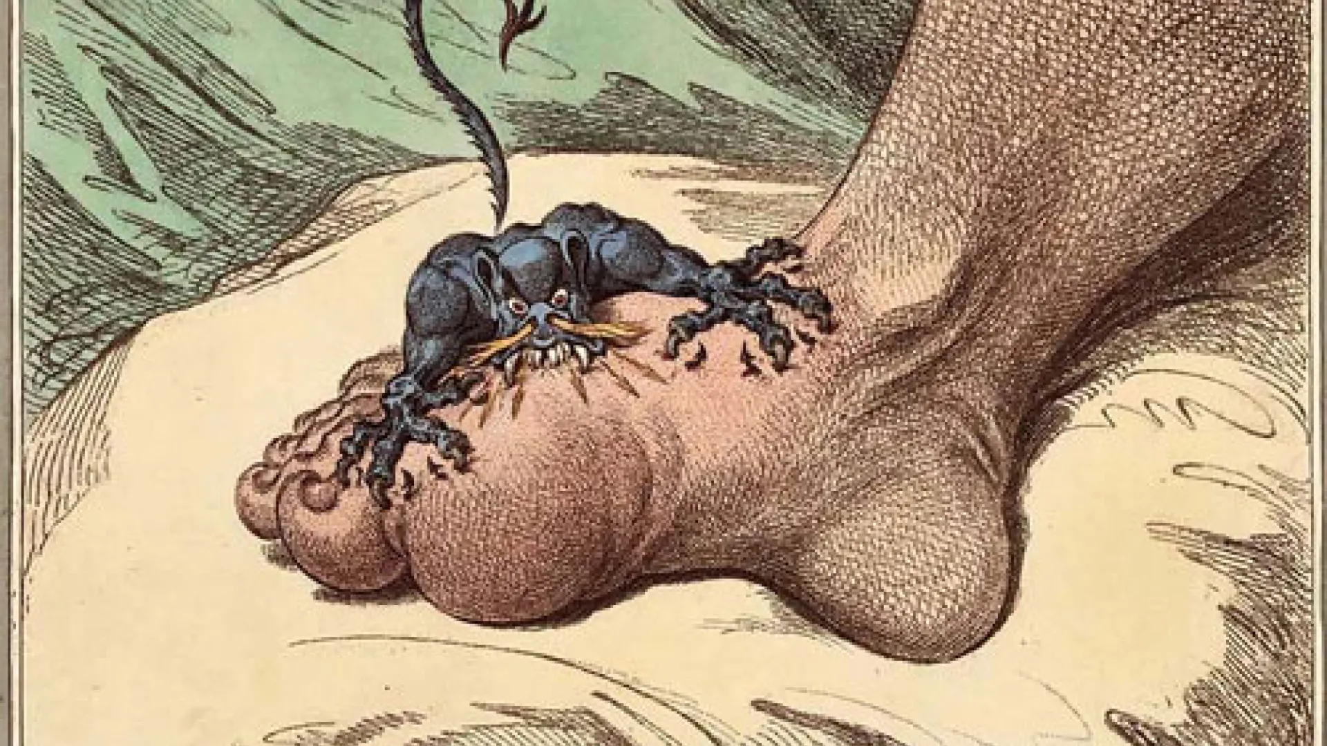 Because all their illustration tended to be allegorical and symbolical, the graphic satirists of the day often depicted common ailments as metaphors for societys larger social and political ills. See, for example, James Gillrays portrayal of gout, a form of arthritis frequently associated with high livingthe disease of kings.