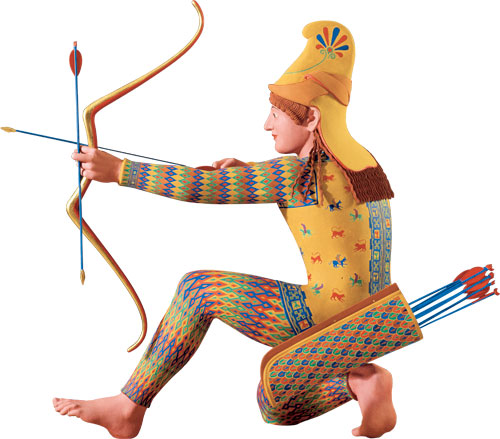 Above: Trojan archer from the Temple of Aphaia on Aegina, Greek, c. 490-480 B.C. He is probably Paris, who killed Achilles with an arrow to that famous heel. He wears the costume of the Scythians of central Asia.