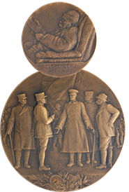 Harvard people with medals they aren’t sure what to do with have often given them to the University. Many of these impressions of history have fetched up in the Harvard College Library, specifically in Houghton, which is otherwise a repository for rare books and manuscripts. Leslie A. Morris, curator of modern books and manuscripts, keeps and shows students an accumulation of about 850 medals. Many of them were struck in the United States, but the gathering is cosmopolitan. The French medals on this page recall the role of that nation in the War to End All Wars.
