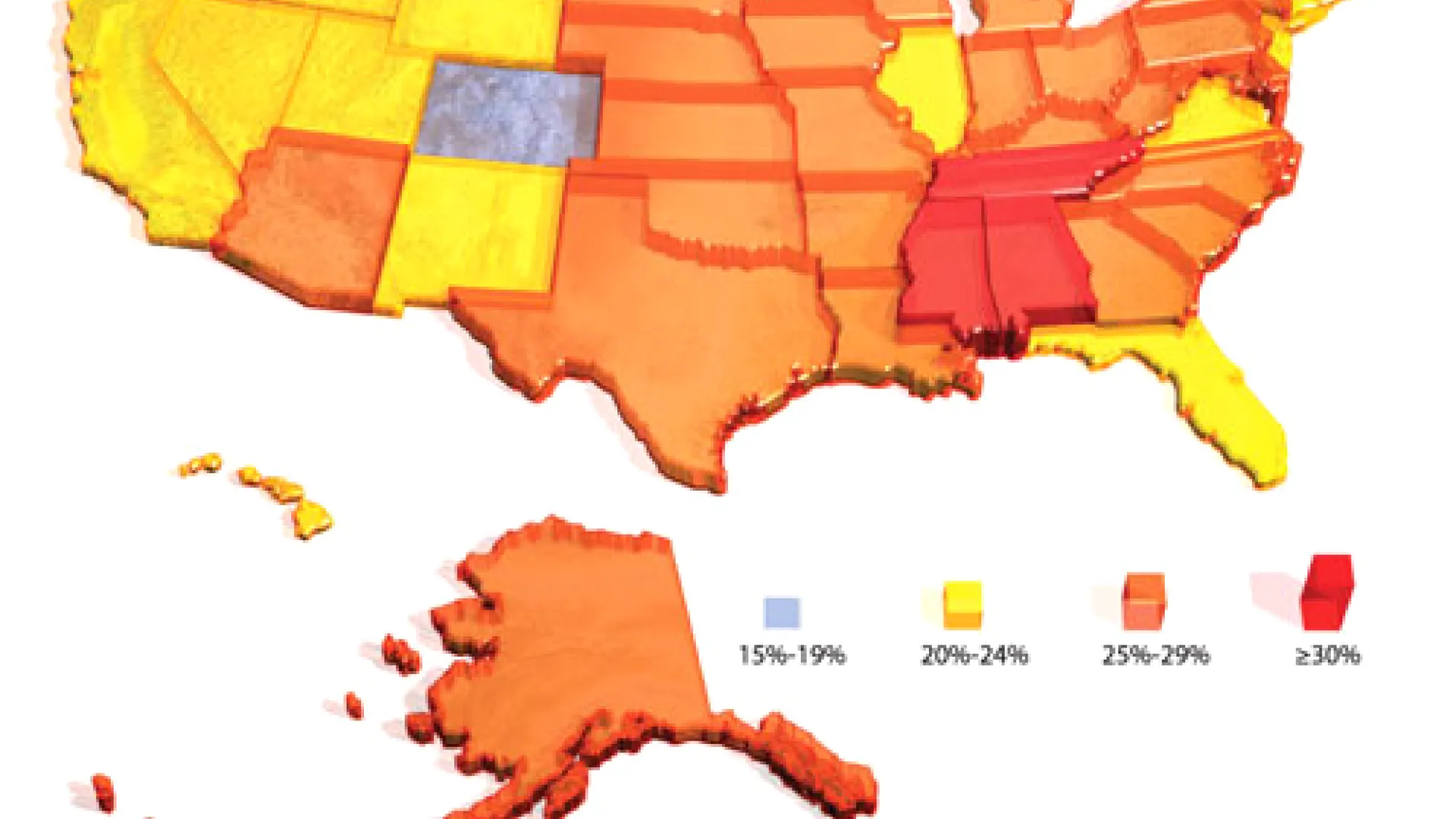 Public-health statistics reveal the repercussions of pushing the limits of this resilience with poor diet, too little exercise, and otherwise unhealthy lifestyles. Two-thirds of American adults are now overweight, according to the Centers for Disease Control (CDC); half of these are clinically obese. In the past 30 years, the prevalence of obesity has more than doubled. In 1985, there were only eight states where more than 10 percent of adult residents were obese; by 2001, there was not a single state with obesity prevalence below 15 percent (see the map opposite). “Collectively,” says Iacocca professor of medicine C. Ronald Kahn, “American adults gained two billion pounds during the 1990s.” (That’s roughly 10 pounds for each American adult, but an arresting figure nonetheless.)