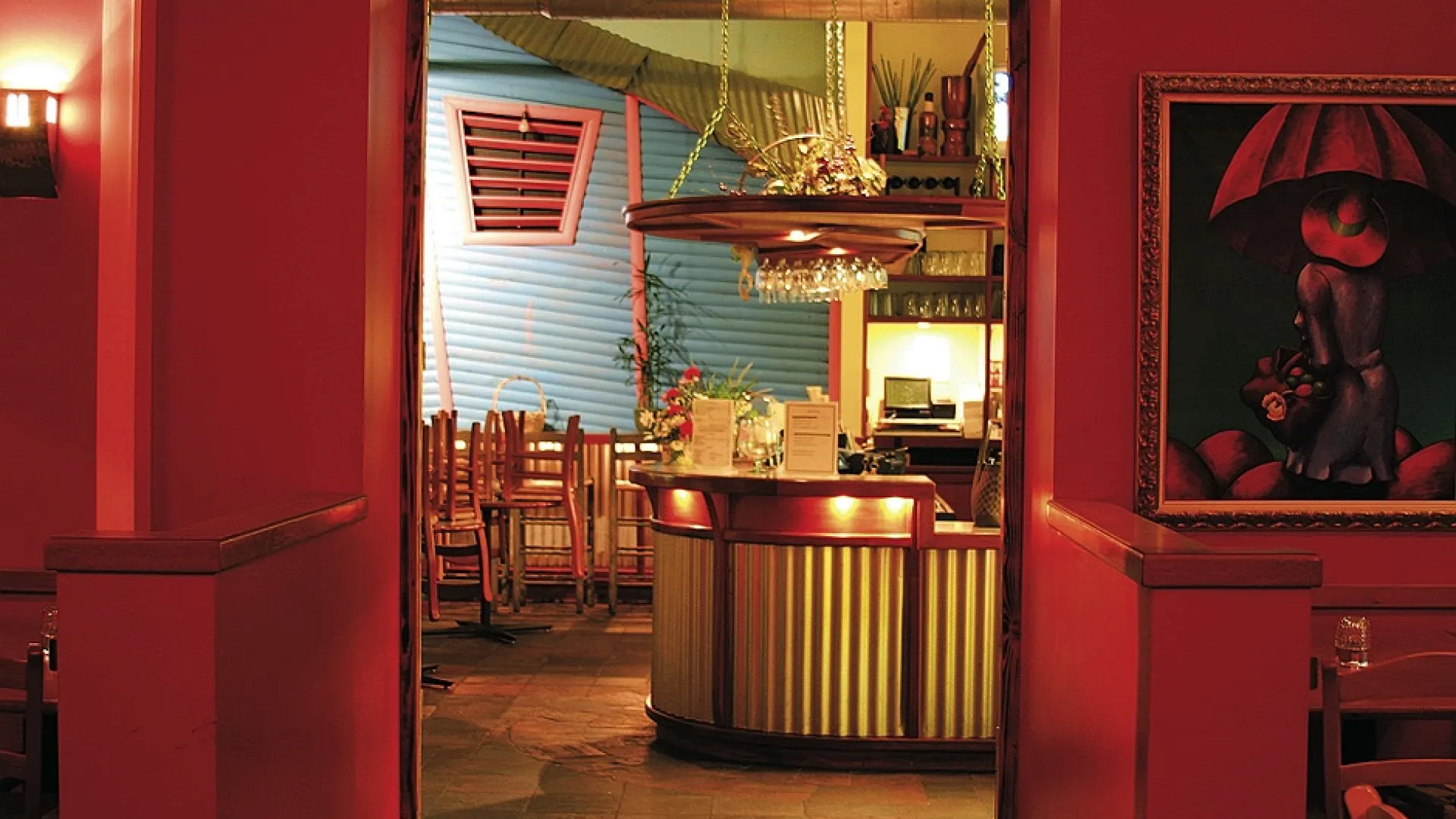 This Latin American restaurant bubbles with life, from the walls dressed in fuchsia, royal blue, and aqua to the glowing bar lights, from the giggling children slurping up their caramel flan to the jazzy guitar music, fairly danced to by servers handing out Red Bull and batidos oasis (a thick fruit shake—try the guava) along with the usual cervezas and a nice array of Chilean vinos rojos.
