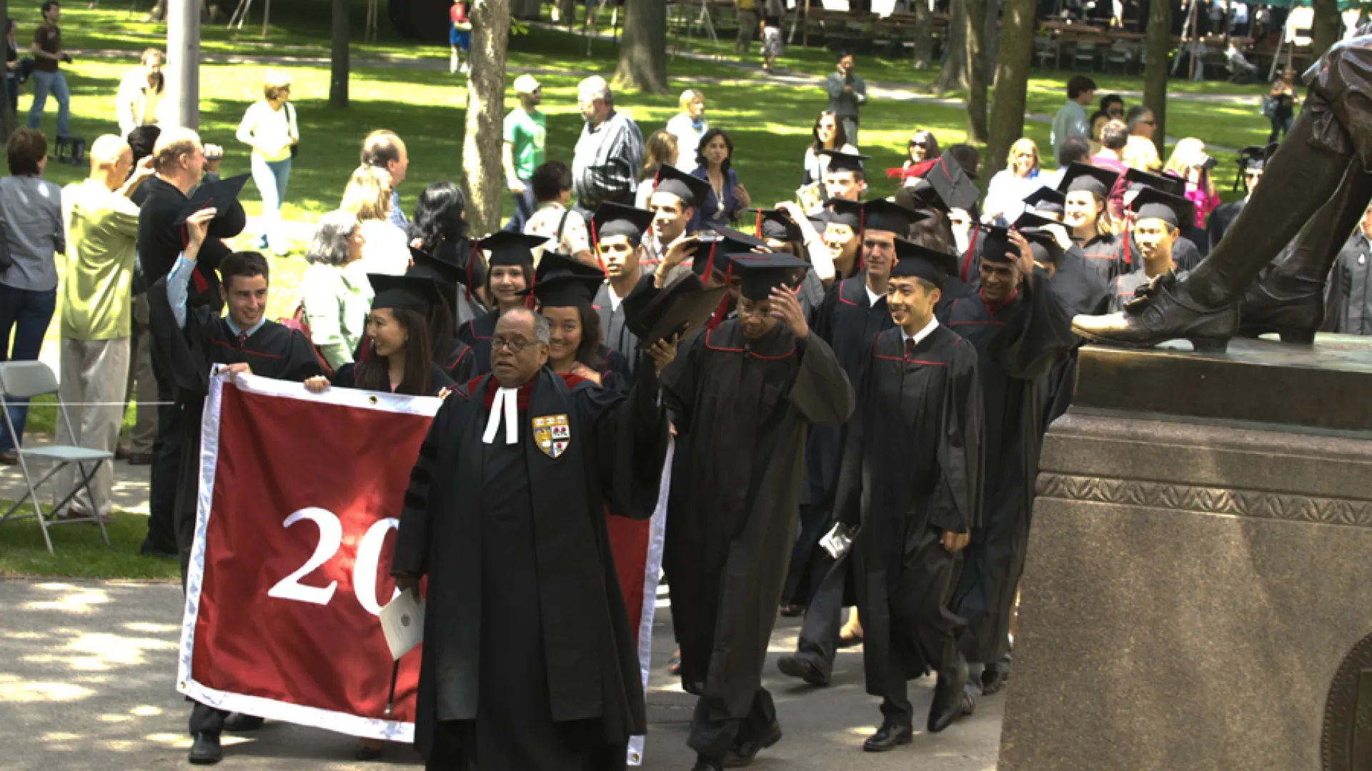 The service, a Harvard tradition since the seventeenth century, also included remarks from Peter J. Gomes, Plummer professor of Christian morals and Pusey minister in the Memorial Church. It included readings from the Analects of Confucius, the Hebrew Bible, Hindu scriptures, the Quran, and the New Testament, and the singing of Psalm 78 to the tune of St. Martin’s, a Baccalaureate tradition since at least 1806.