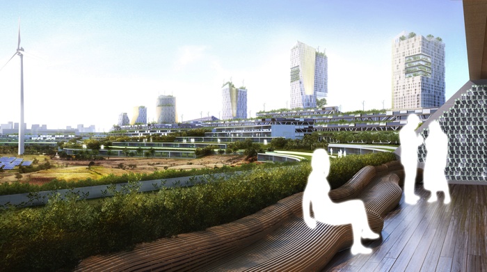 HOK’s team determined that the site’s original ecosystem was a moist deciduous forest that in recent times had become an arid landscape. In its original state, trees would have maintained soil quality, stored water through the dry season, and provided a canopy to control evaporation. The team took this as the design’s point of departure. Working with engineering consultancy Buro Happold, they are designing a building foundation system to store water, as the trees once did. And for the future city’s rooftops, the team is borrowing from the unusual morphology of the native banyan fig leaf: its so-called “drip-tip,” a pointed spear at the leaf’s end that doubles water run-off and cleans its own surface in the process. Using the leaf as a model, HOK is developing a tiled shingle system that will shed water in the same way. During the rainy season, however, there is the problem of where to send overflows; for this, HOK looked to local harvester ants, which divert water away from their nests with multipath, low-grade channels. The site’s master plan will adopt this insect strategy to channel water through the city.