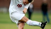Of course, another factor is having a strong shot. On a free kick, Nichols’s powerful right leg can rocket one into the goal from 30 yards out. “She’s the best free kicker I’ve ever coached,” says head women’s soccer coach Ray Leone. “Her range makes Lizzy a threat from anywhere.”