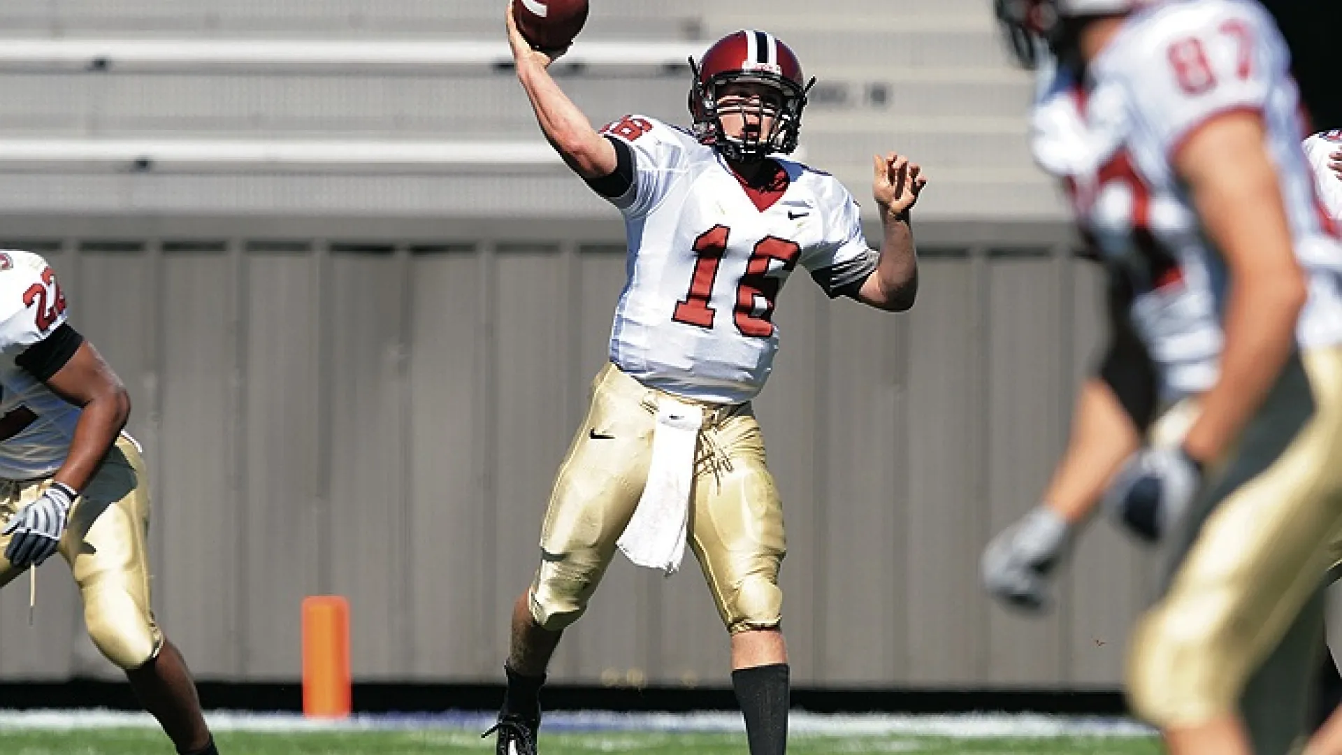Once again—for the third time in four years—Harvard started off as the preseason favorite to capture the Ivy League football trophy. Coach Tim Murphy’s squad cleared the first hurdle in its Ivy opener: a showdown between Harvard and Brown, the league’s defending co-champions, in a Friday night bout at the Stadium in late September. The Crimson prevailed, 24-21, surviving a dramatic Brown rally in the final minute of play.