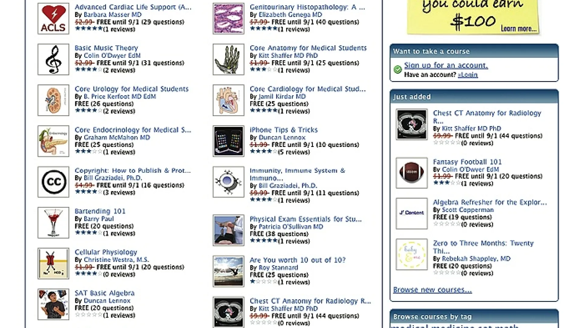 There are now dozens of courses on the SpacedEd website, which went live in May. Many are for doctors and medical students, but there are also offerings on bartending, iPhone tips, and music theory (which includes video of the instructor playing his guitar in each question). Nearly all are free; a few have very modest fees—$1.99 to $9.99. Kerfoot feels that the platform can work with almost any type of course, including K-12 education, and plans to enlist teachers all over the world to develop the curriculum, with course authors keeping 60 to 80 percent of the revenue if there is a tuition fee. His ambition is to cultivate a “social learning community” where course authors and students interact online, becoming engaged in creative and effective courses and generating comment and discussion on the curricular topic. “Our goal is to get the methodology out beyond the Harvard firewall,” he says. He’d also love to see a course in Spanish, which he has studied three times previously. As he says, “I won’t have to forget it a fourth time.”