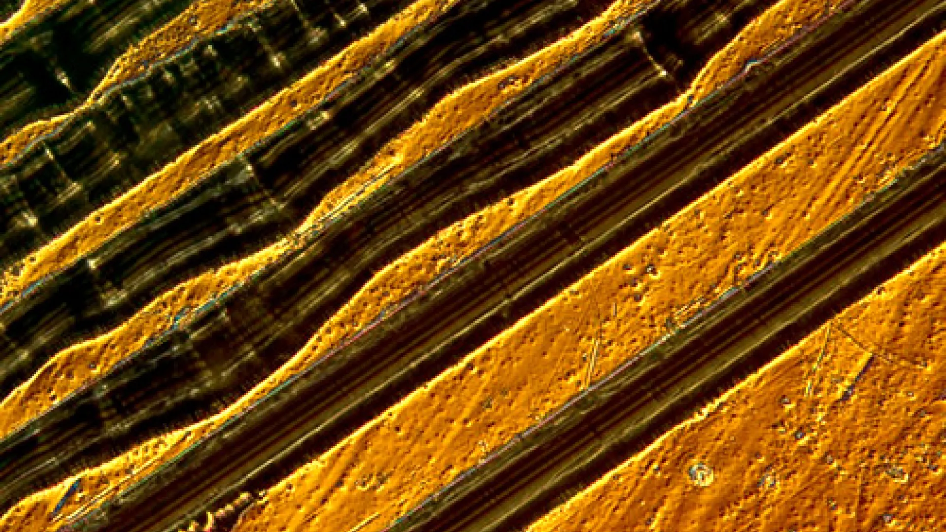 The nanoscale world is the realm of the truly small. One nanometer is a billionth of a meter, about 100,000 times thinner than the sheet of paper on which these words are printed. If you could shrink to that height, atoms would be from ankle- to waist-high, and a single molecule would wiggle and jump as you watched an electron pass through. The ridges of an old 33-rpm vinyl recording would rise before you like mountain ranges (pictured on this page, several tracks from the Beatles’ “Eleanor Rigby”). You would quickly realize that objects and forces from your new vantage point are not just quantitatively smaller, but qualitatively different. Matter at that scale sometimes defies classical, Newtonian physics. Light is seen to be both a wave and a particle. Caged electrons tunnel through atoms-thin walls, releasing energy as they escape confinement. Proportionally, surface area becomes vastly larger and more important than volume, leading to significant changes in physical properties.