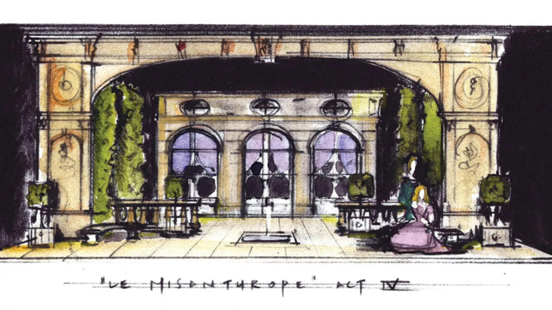 The design process for theatrical sets and motion-picture settings parallels the sketching a fashion designer does for a couture dress that later, with the aid of a seamstress, takes form in fabric, plastic, metal, or other materials. For theater, after reading the play and hashing out ideas with the director, Sprague sketches some set designs; he’ll take those that pass muster and turn them into drawings that can be built. The work has elements of architecture and presents practical problems to solve. A door-slamming Feydeau farce, 13 Rue de L’Amour, at Shakespeare & Compa-ny in Lenox, Massachusetts, required scene changes in “five seconds, and there was no wing space or fly space, only room for a wall of flats,” Sprague explains. He made the whole set a “series of hinged flipper panels that could, in a few seconds, transform from a doctor’s office into a dress shop.”