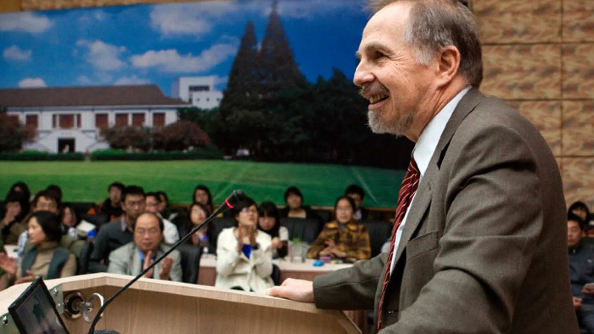 Kleinman’s connection to Fudan is not incidental. Among other ties, his student Pan Tianshu, Ph.D. ’02 (read about Pan’s research here, and his review of a book on China’s migrant industrial workers here), is now an associate professor at Fudan’s School of Social Development and Public Policy. He invited Kleinman to talk about his current work, combining his scholarship in anthropology and social medicine with his recent personal experience of providing care for his wife, who has been disabled by Alzheimer’s disease. Kleinman, like many other faculty members, has advised, hosted as fellows at Harvard, and worked with dozens of Chinese colleagues (read about some of Kleinman’s work); in the aggregate, large and deep networks of academic collaboration have been created in virtually all fields and professions. Kleinman’s talk at Fudan, before an overflow crowd of interested, responsive students, was emblematic in a small way of University relationships nurtured for many years.