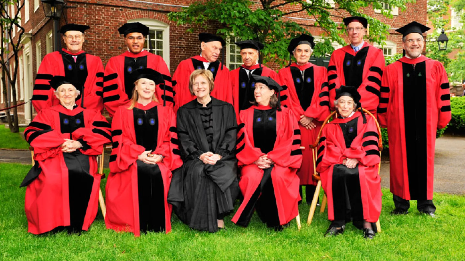Meryl Streep, Doctor of Arts. A graduate of Vassar College, Streep received her M.F.A. from Yale in 1975, and began her career on the stage in New York. For 35 years, she has been active in an astonishing variety of acclaimed roles, particularly in movies; she has become the most nominated performer in the history of both the Academy Awards and the Golden Globes. Her recent film credits have included It’s Complicated and Julie & Julia. (The 2009 Harvard Magazine profile of playwright Christopher Durang ’71 recounts his overlapping Yale theatrical studies with Streep.)
