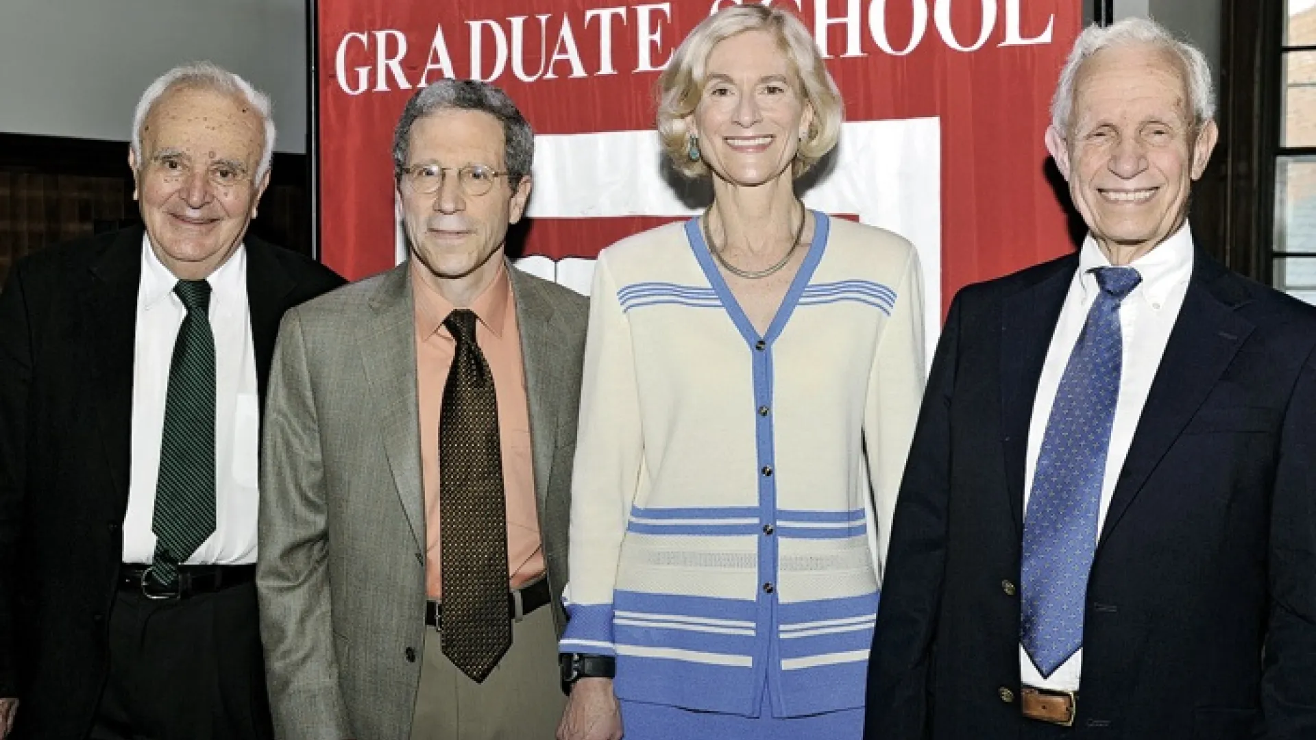 The Graduate School of Arts and Sciences Centennial Medal, first awarded in 1989 on the occasion of the school’s hundredth anniversary, honors alumni who have made contributions to society that emerged from their graduate study at Harvard. This year’s honorands are (from left): Stephen Fischer-Galati ’46, Ph.D. ’49, a specialist in East European history and civilization and a professor emeritus at the University of Colorado; economist and 2007 Nobel laureate Eric Maskin ’72, Ph.D. ’76, of the Institute for Advanced Study; classical philologist Martha Nussbaum, Ph.D. ’75, professor of law and ethics at the University of Chicago (see “Education for the Soul,” page 16); and Shakespeare scholar David Bevington ’52, Ph.D. ’59, a professor emeritus at the University of Chicago. For more about the medalists, visit harvardmag.com/2010-centennial-medalists.