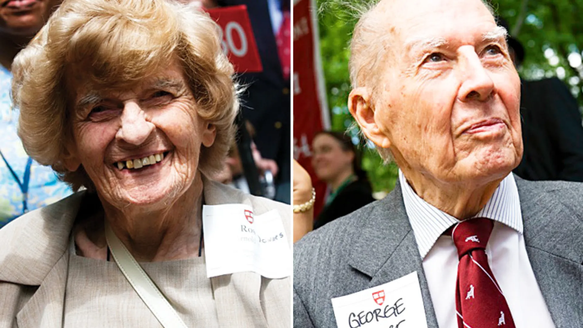The oldest graduates of Harvard and Radcliffe present on Commencement day were Rose Downes Arnold ’36, 90, of Arlington, Massachusetts, and George Barner ’29, Ed. ’32, L ’33, 101, of Kennebunk, Maine. Both were recognized at the afternoon ceremony by HAA president Teresita Alvarez-Bjelland ’76, M.B.A. ’79. Arnold was accompanied by her brother, J. Edward Downes ’35, of Weston, Massachusetts. In chatting about the days when they and their two siblings, Thomas Downes ’34 and Philip Downes ’40, now deceased, attended Radcliffe and Harvard, they recalled that tuition was $400 per year. Even so, they reported, a fair number of their classmates had to drop out because of financial hardships during the Great Depression. “It was terrible,” Edward Downes noted. “There was no help at all with tuition--or anything.” A generation earlier, their mother had been accepted at Radcliffe, but chose to attend Boston University instead because it was $25 cheaper than Radcliffe’s annual tuition of $150. “Her family just did not have the extra $25,” Rose Arnold reported. “That’s what times were like.”