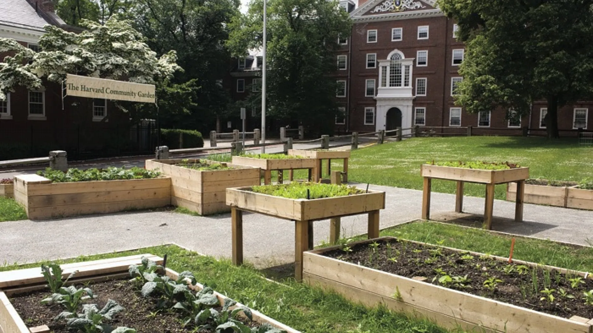 The new Harvard Community Garden (below) was built this spring in raised beds of different heights in a 560-square-foot growing space between the front door of Lowell House and Mount Auburn Street. Its mission is “to provide experiential education in sustainable, urban agriculture, and to provide food for students, faculty, and the local community.” It was planted--with arugula, mizuna, Swiss chard, Toscano kale, onions, snow peas, peppers, eggplant, and much more--and will be maintained by undergraduates, with advice from various quarters, including the Center for Health and the Global Environment at the Medical School.