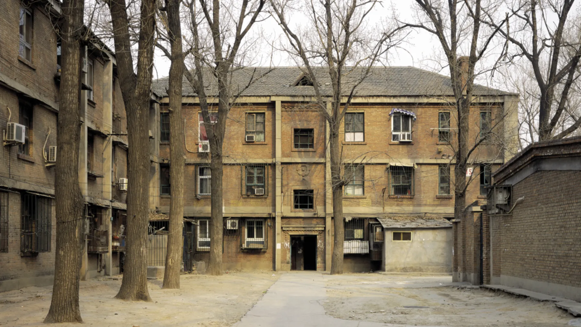 Beginning in 2003, Wang Di turned his eye on the architectural remnants of the Beijing of his youth: the low-rise socialist housing built in the wake of the Communist victory in 1949. Having fomented a Marxist revolution, Party leaders set about creating the urban proletariat that their theory required but their society lacked. Around the new heavy-industrial factories, they erected worker housing with communal kitchens, borrowing the modernist design principles of Gropius and the Bauhaus—as refracted through Soviet Russia and East Germany—and building with what materials they could afford. It is this worn housing, now being razed (along with the factories, which are being force-marched out of the city centers they so badly polluted), that Wang Di has chosen to document.