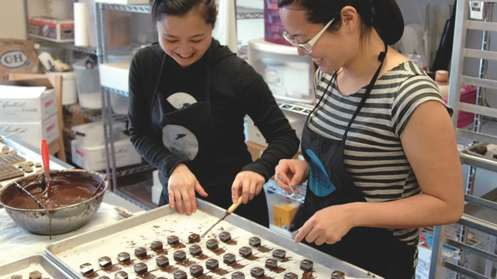 It’s a Saturday night in San Francisco. Time feels tight for Susan Lieu ’07 and her older sister, Wendy, founders of Sôcôla Chocolatier. (Sôcôla, from the French chocolat, means “chocolate” in Vietnamese.) They must make 1,200 more truffles--pear pâte de fruit, yuzu ginger, jasmine tea, and burnt caramel with red Hawaiian sea salt.