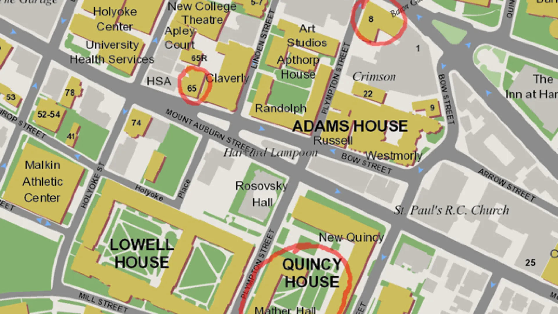 The College has announced the Harvard-owned properties that will be used for undergraduate residences during the renovation of part of Quincy House during the 2012-2013 academic year—a prototype, announced in January, for renovation of all the Houses, one of the most ambitious University capital projects planned for the foreseeable future. Old Quincy, now home to 180 students, will need to be vacated for 15 months. According to an announcement by Faculty of Arts and Sciences (FAS) dean Michael D. Smith and College dean Evelynn M. Hammonds, the students—identified through the rooming lottery process in the spring of 2012 along with their Quincy House peers—will occupy Hampden Hall, at 8 Plympton Street (next to Grolier Poetry Book Shop and, on the Massachusetts Avenue side, above the Harvard Book Store); Fairfax Hall at 1306 Massachusetts Avenue (almost directly opposite the rear entrance to Widener Library, and over Leavitt & Peirce, the venerable tobacconist); and Ridgely Hall, at 65 Mount Auburn Street (facing Lowell House and the Harvard Community Garden). Students will continue to dine in Quincy House.
