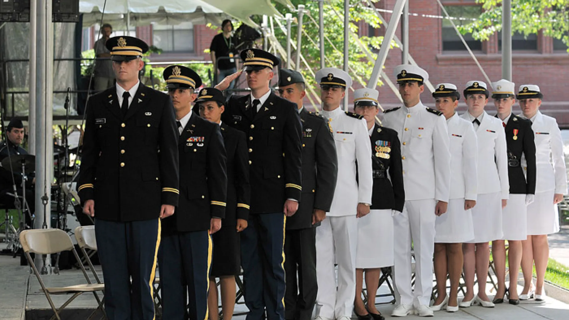 In academic terms, Harvard Navy and Marine Corps midshipmen will continue to take their NROTC classes at MIT, home to the courses and faculty who have trained area students enrolled in the program. This decision was expected, because military leaders have indicated it is uneconomical to expand the number of ROTC programs to multiple campus sites, with each serving a potentially small number of students. Tonight’s announcement notes that maintaining the current consortium arrangement is “best for the efficiency and effectiveness” of the operations. From Harvard’s perspective, this means that issues of faculty appointments and class credit for new ROTC courses within the College curriculum do not arise now.