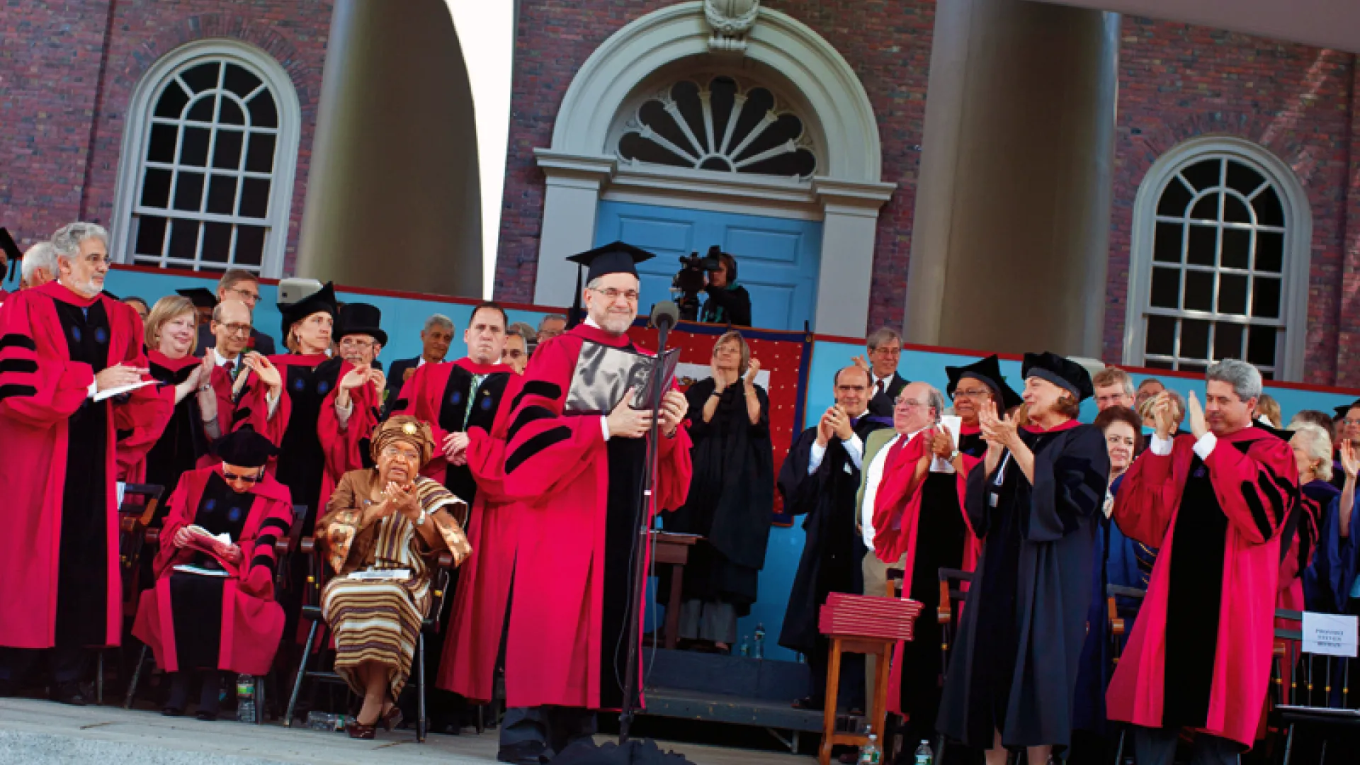 As the exercises ended and the entire assembly rose in song, Plácido Domingo, freshly anointed Doctor of Music, master of more than 130 different operatic roles, in more than 3,500 performances, scrutinized the program, trying to keep up with the Latin lyrics of the “Harvard Hymn.”