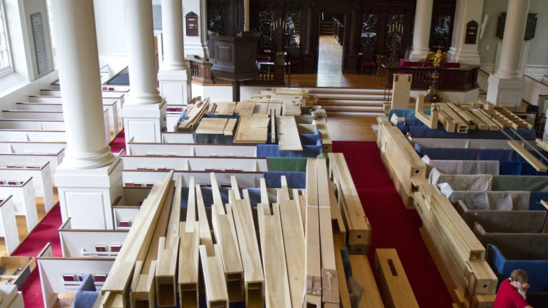 Curious tourists peeking through the open doors of Memorial Church this summer will see neat stacks of lumber and many, many pipes. They won’t see churchgoers; instead, they may hear a hustle and bustle in the rear gallery—the installation of the church’s newest organ, Fisk Opus 139.