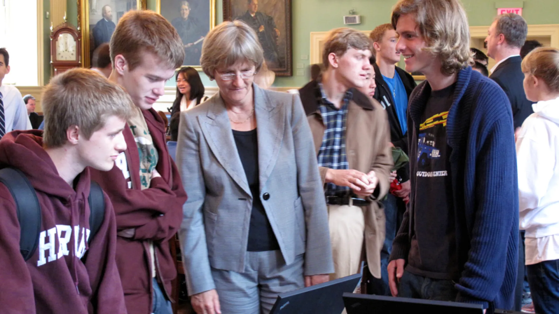 President Drew Faust, on hand at University Hall to watch students register, likened it to “drive-in voting.” “Put the opportunity to vote right next to something freshmen have to come in to do, so it reminds them of the opportunity,” she said. “Both the people I just spoke to are registering for the first time, so that’s very meaningful....I think a liberal-arts education is meant to educate people in a variety of ways, and I think one of those ways is the responsibility to vote.”