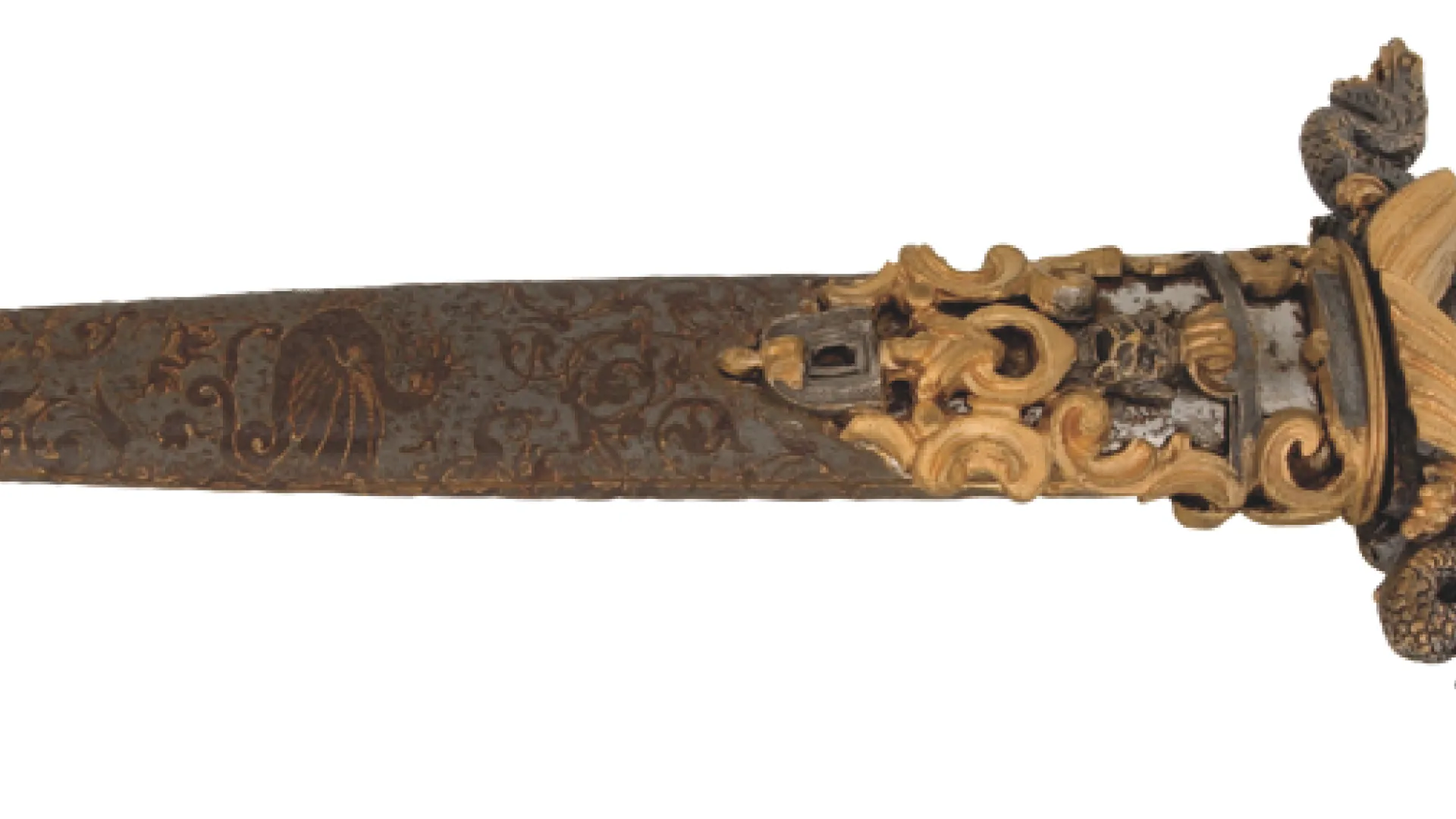 Although its steel blade is sharp and pointed and capable of doing serious damage unsheathed, this 131/2-inch dagger was not meant to be a weapon. It is French, of cast bronze with gilded silver and engraved steel, and was crafted by an unidentified artist working sometime in the 1840s. Ivan Gaskell, Winthrop curator in the Harvard Art Museums, acquired the piece for the Fogg Museum in 2003 from David and Constance Yates, New York City dealers who specialize in nineteenth-century French sculpture.