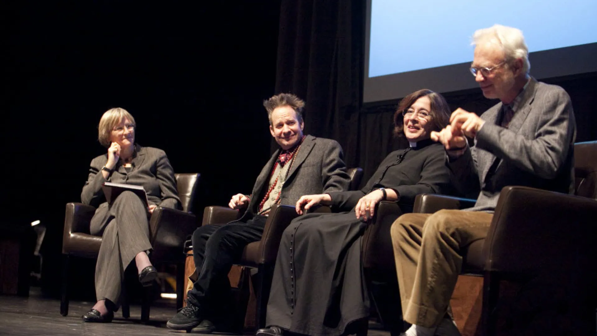 The three Harvard College alumni behind the acclaimed 1987 opera Nixon in China—composer John Adams ’69, A.M. ’72, librettist Alice Goodman ’80, and director Peter Sellars ’80—gathered at the American Repertory Theater on November 15 to discuss the opera as part of Harvard’s yearlong 375th anniversary celebration, which kicked off with a party in the Yard on October 14. President Drew Faust, who moderated the colloquy, began by stating that Nixon in China, which drew a mixed reception at its premiere, “has returned as a kind of iconic reality.”