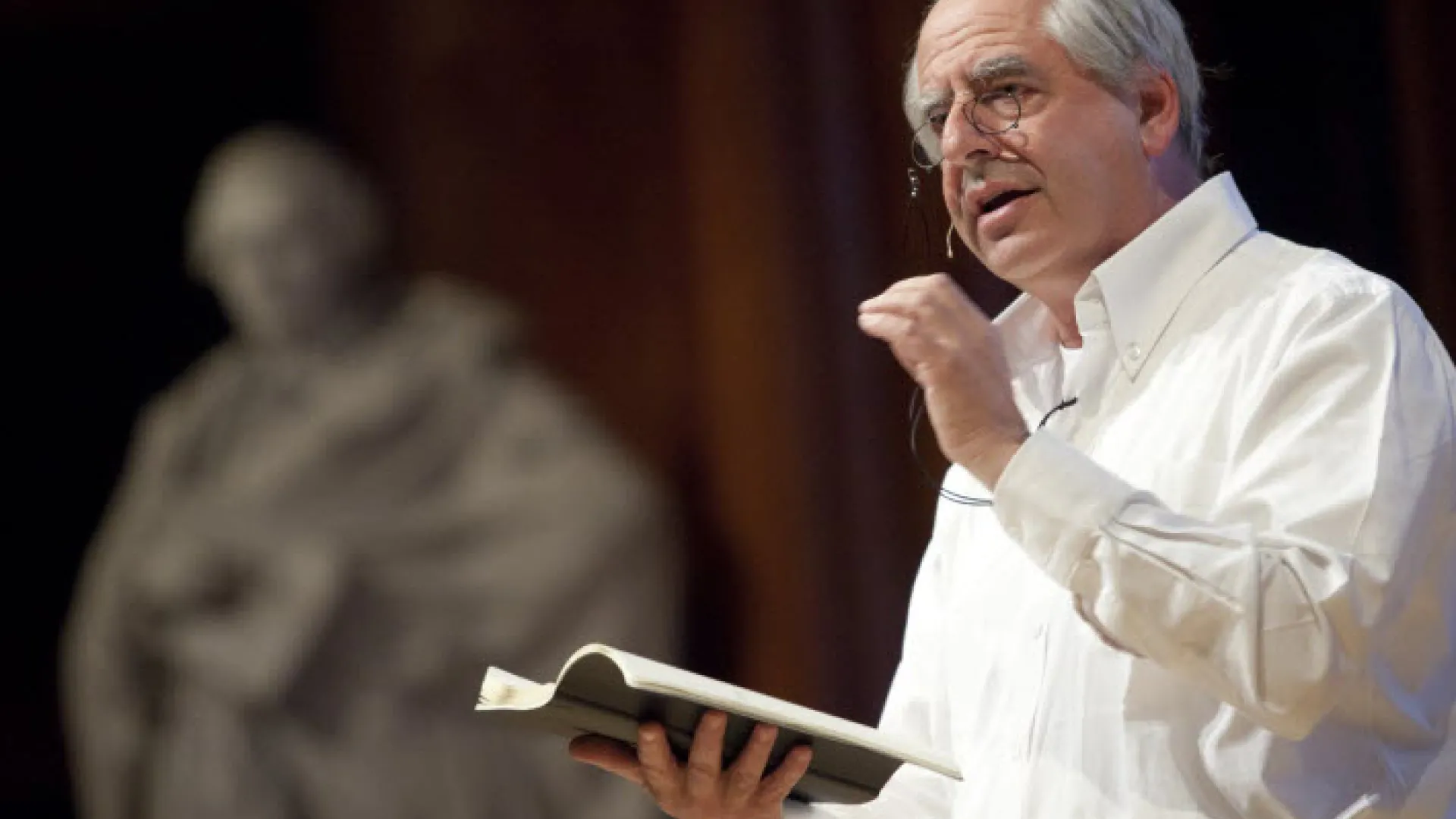 It’s not immediately clear, as William Kentridge starts to play an excerpt from his 2005 animated film rendition of The Magic Flute, how the 1791 Mozart opera connects to the topic of his second Norton Lecture, “A Brief History of Colonial Revolts.” On screen, a metronome with a Masonic Eye of Providence in place of a weight ticks back and forth, out of time with the music. A vaguely hieroglyphic bird eats the eye, grows tall legs, then walks away. The motifs of presence and erasure that characterize many of Kentridge’s films occur here, but in a less pronounced manner. A negative image—a silhouette, white on black—of a man in a high collar (perhaps Kentridge himself?) conjuring birds appears. That man plays with elements of the animation from within the film. Finally, a wheel of architectural drawings spins before the lens of the camera, and with a resolute cadence in the strings, the overture ends and the lights come up.
