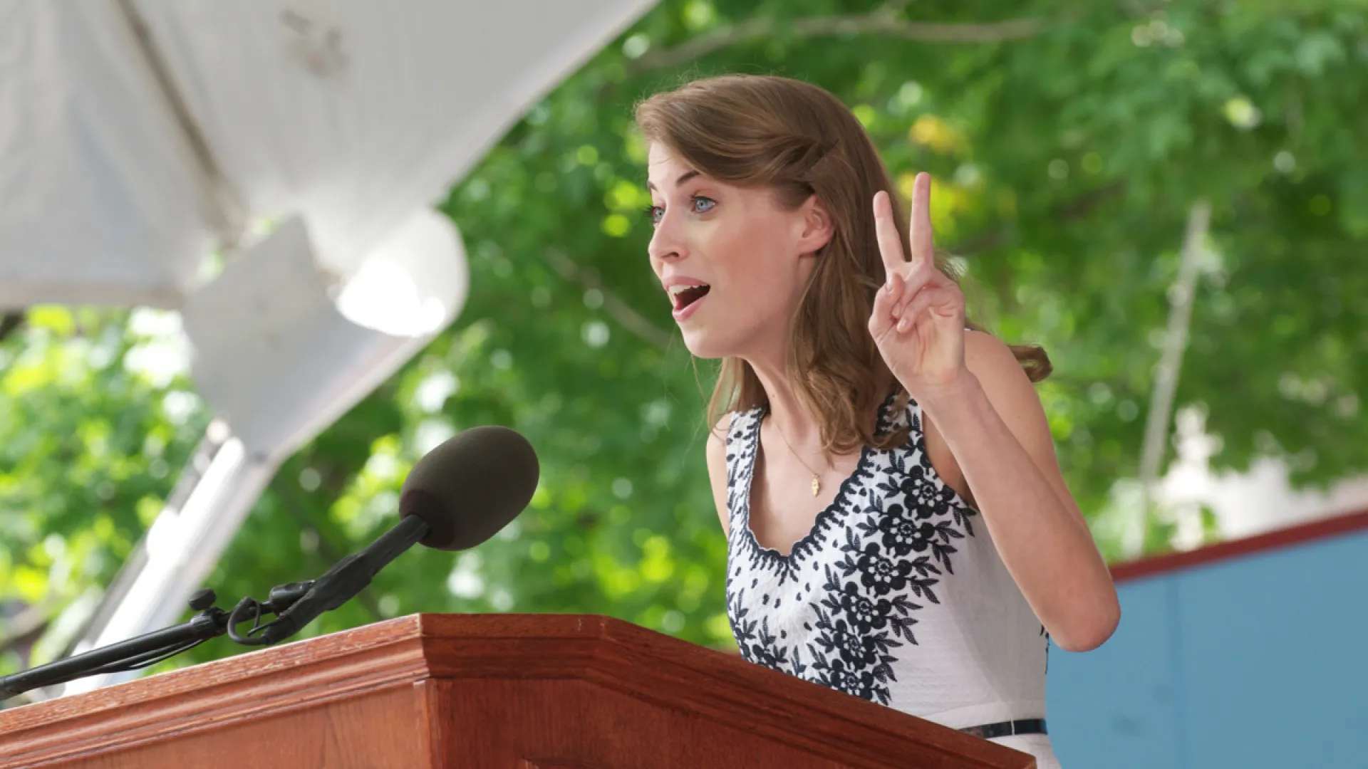 She encouraged a definition of wisdom that includes making mistakes: "They make your life the joke that everyone can laugh at, just like Buddha's belly or Steven Pinker's haircut." This way, "after enough mistakes and unrelenting laughter, you'll find yourself as an old, wise Harvard graduate who made the world a better place just by being yourself."