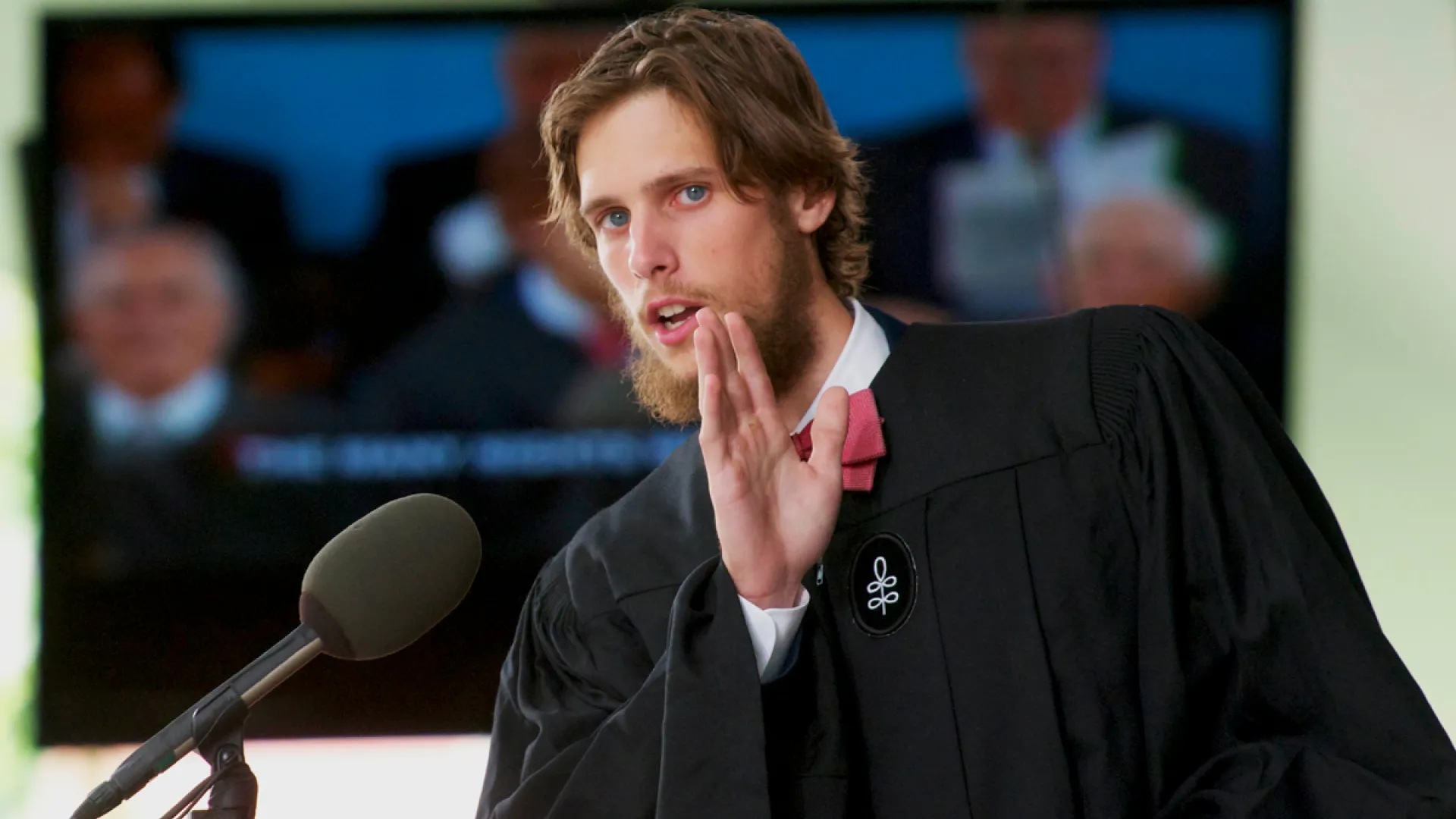 Latin orators "usually exploit the absurdity of talking about contemporary things in an ancient language, and draw attention to that incongruity," says Pope professor of the Latin language and literature R.J. Tarrant, who coaches the student speakers on pronunciation and delivery. The speech by this year's orator, Michael Velchik ’12, was no exception. Clichéd jokes become new in Latin. For example: "For some of you, this is the climax; life is only downhill from here. You will spend the rest of your life always looking backwards and often reminding those around you that you went to college in Boston—well, actually, in Cambridge..." (Aliis gradum suscipere gradatio vitae est, reliqua via prona. Reliquam vitam teretis semper recordantes saepeque monentes circumstantes vos cooptatos esse in quoddam collegium Bostoniae situm, re vera Cantabrigiae...) Or: "Having been sorted on that festive and fatal day into Houses, a fortunate group to the Quad, a more fortunate group to Houses overlooking the Charles River, and the most fortunate group to Dunster House" (Tum illo die festivo ac fatali alii beati admissi in Hortum Quadratum, alii beatiores ad domus Flumini Carolo adiacentes, alii beatissimi ad Domum Dunsteriensem). Velchik, a classics concentrator from Dunster, even worked in a reference to "Linsanity" in Latin.