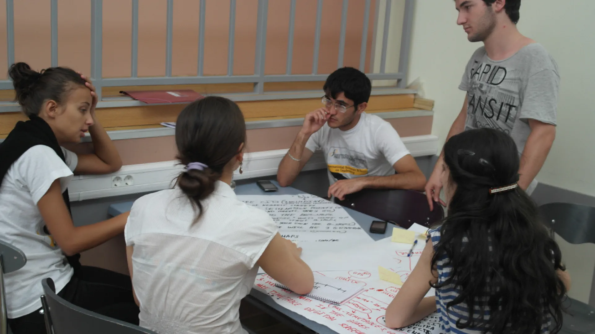 Adzinbaia got his wish last year, joining dozens of other students from Georgia, Azerbaijan, Armenia, Ukraine, and Russia in the 10-day-long program held in the Free University of Tbilisi’s Bazaleti Training Center—which once served as the primary Soviet signals intelligence center to block Radio Free Europe and other Western radio broadcasts from reaching citizens of the USSR. Participants experienced both lecture-style and hands-on learning: attending classes, reviewing leadership case studies, and joining in exercises and projects to foster skills such as decisionmaking, compromise, and teamwork. And this summer, Adzinbaia served as a mentor for a new class of 80 participants (selected from about 300 applications). He was excited to work with a new crop of potential leaders: “It was nice because I have been through this before, so I could really observe more and help the new students,” he says.