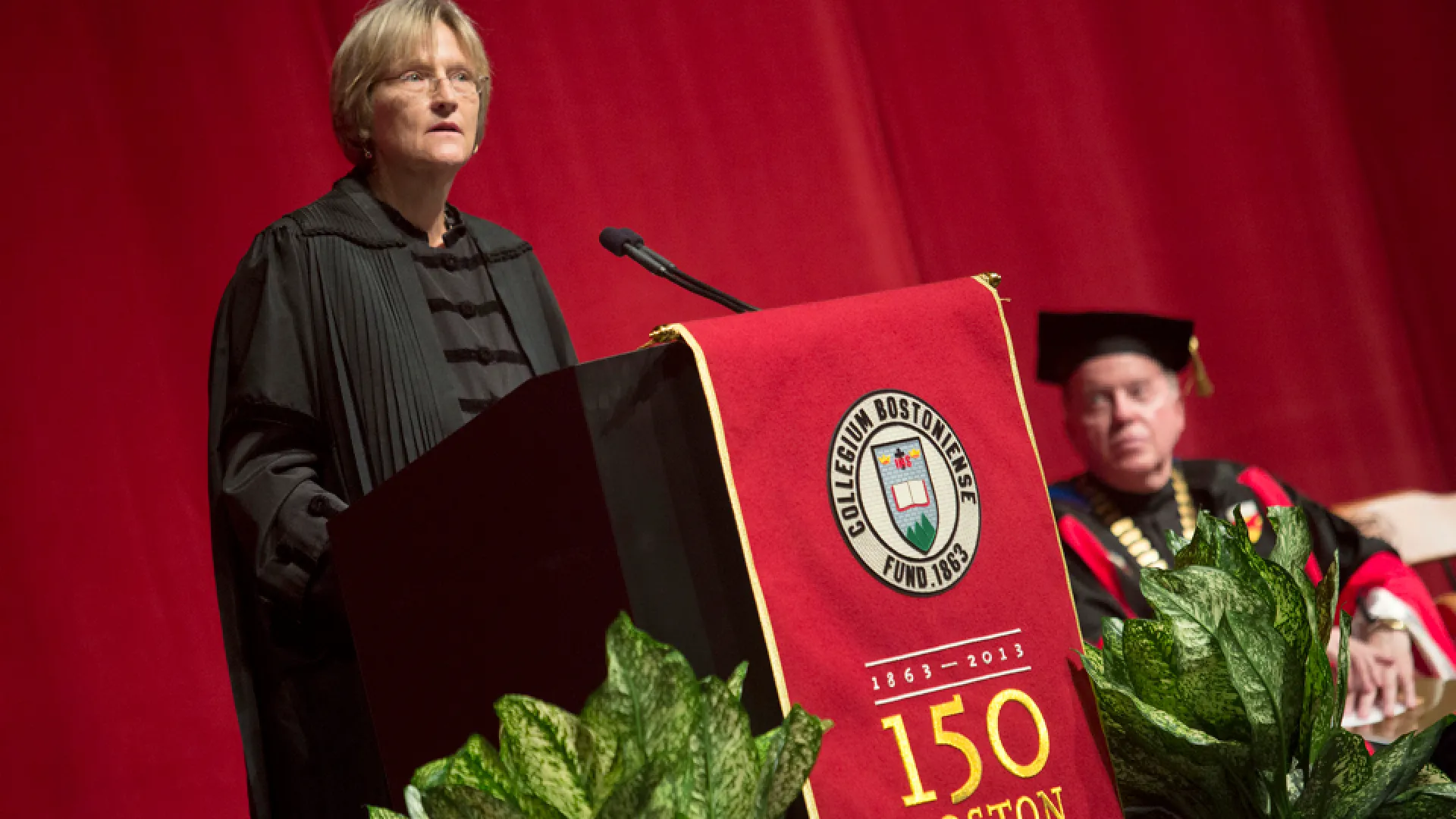 In that spirit, she saluted Boston College for its 150 years of “singular achievement,” on an occasion meant to “honor the Jesuit commitment to scholarship, justice, and service.”