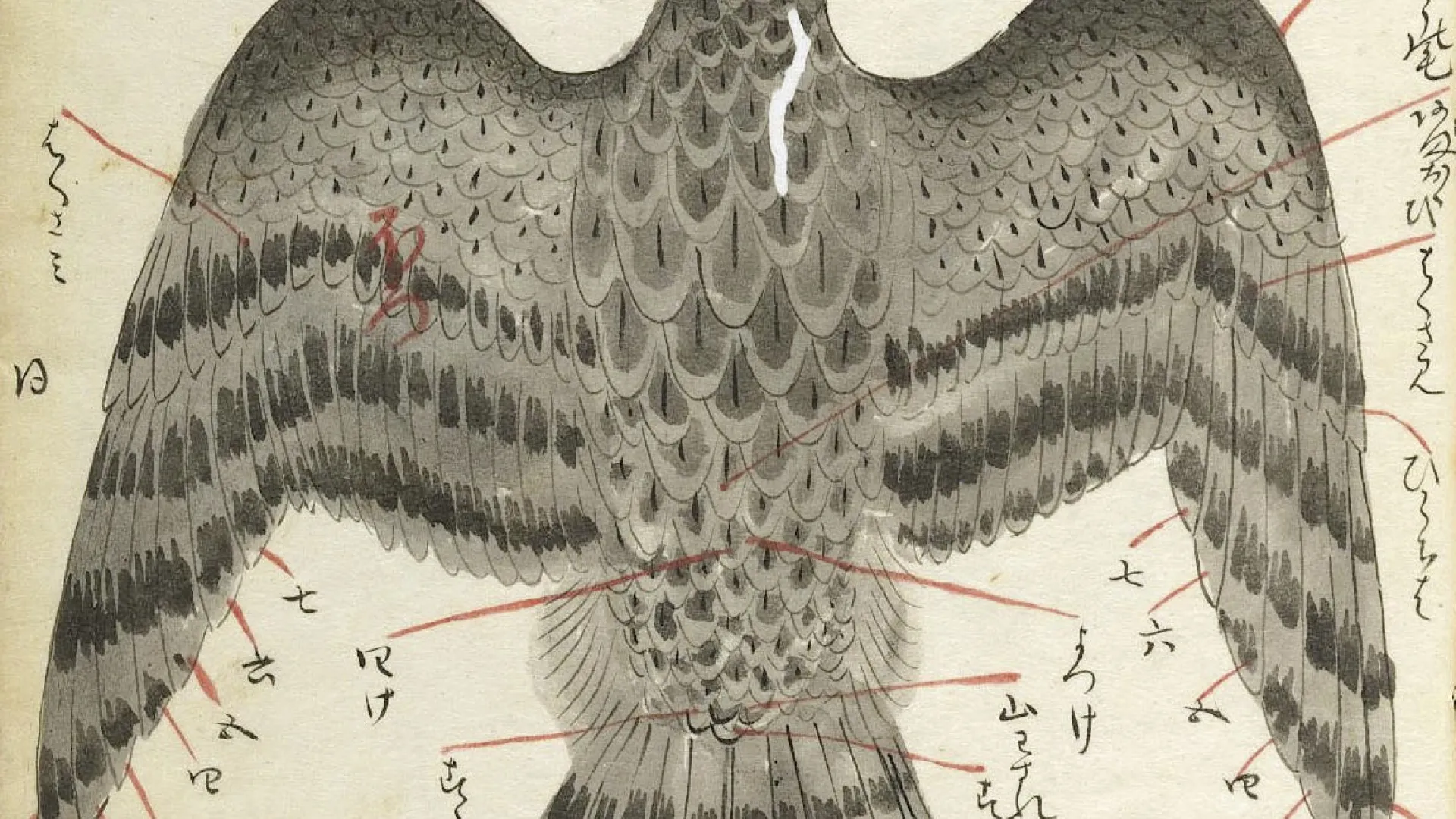 The library holds 11 Japanese books on falconry produced before 1800, all but one of them manuscripts, among its 1.3 million texts. Four of the works once belonged to Matsudaira Sadanobu (1759-1829), a chief senior councilor of the Tokugawa shogunate, and include the two pages reproduced here. They were copied then from manuscripts attributed to Jimyoin Motoharu, a celebrated calligrapher and a member of the Jimyoin falconry school, who made his copies in 1506. One manuscript is a copy of a text that had itself been copied in 1328, thus showing, says McVey, how this specialized knowledge was transmitted privately within a family of falconry experts for generations.