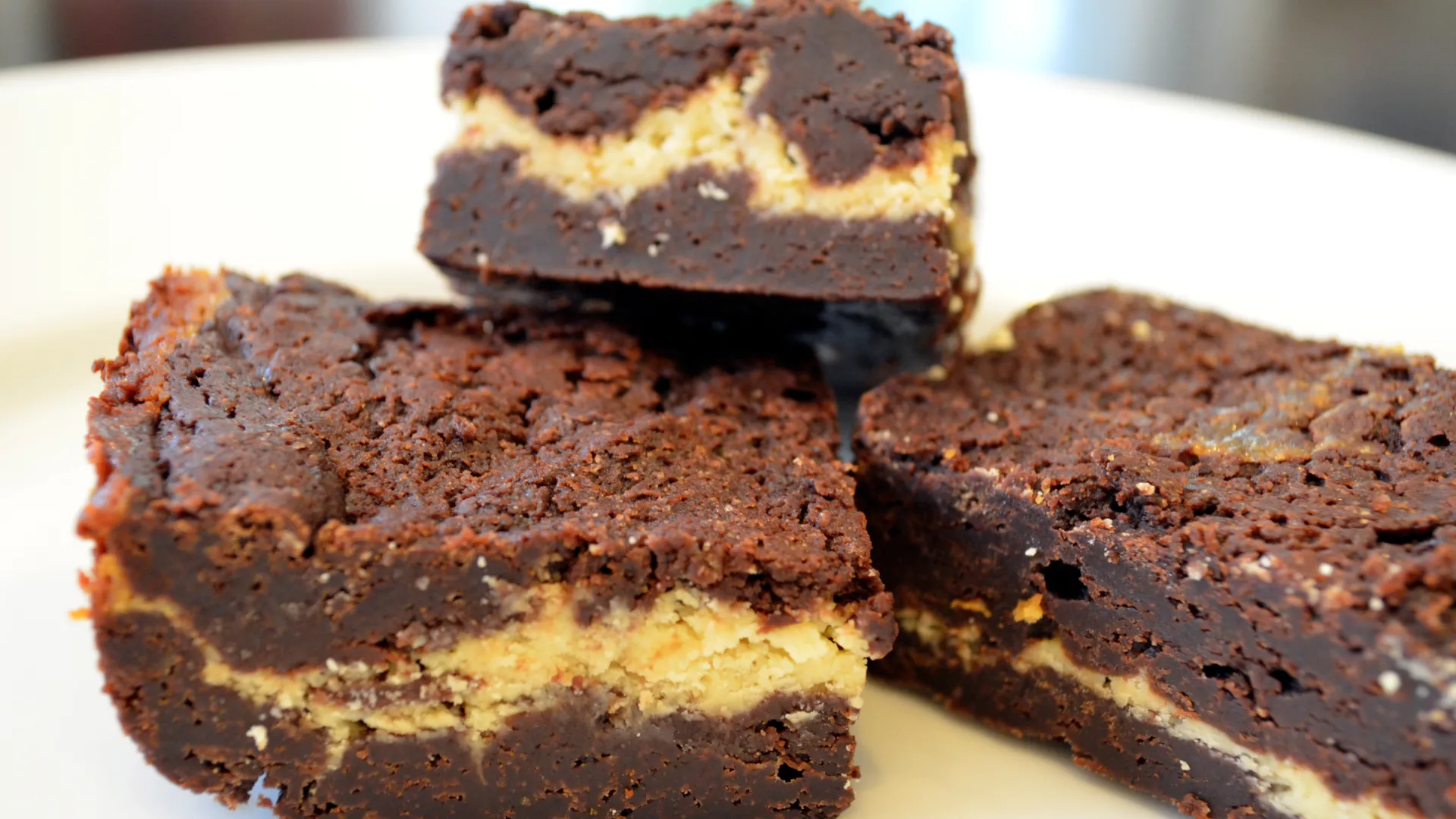 Chèvre batter: Beat all ingredients with electric mixer until smooth. Drop dollops of batter on top of the brownie batter, and swirl them in with knife. Add the second half of brownie batter and smooth it over chèvre mixture with a knife or spatula.