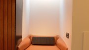 Couches, a flat-screen TV, multicolored chairs, and a brand-new kitchen have transformed the basement, once used for storage, into a community room for watching major events like elections or for making homemade pizza. A below-grade terrace invites the socializing to extend outside during clement weather. Down the corridor there is a state-of-the art videoconferencing classroom with smart boards; on either side are private practice rooms for musicians, alcoves with skylights, and an ultramodern seminar room.