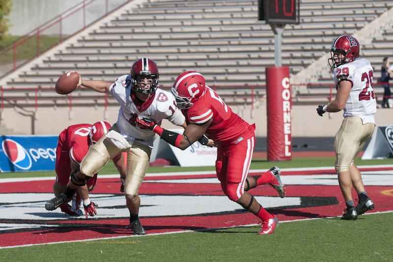 Cornell’s first touchdown came on the opening drive of the second half. After heaving a 50-yard pass to receiver Grant Gellatly, Mathews took a helmet-to-helmet hit delivered by cornerback Norman Hayes. Apparently shaking it off, Mathews drilled a nine-yard scoring pass to Gellatly three plays later.