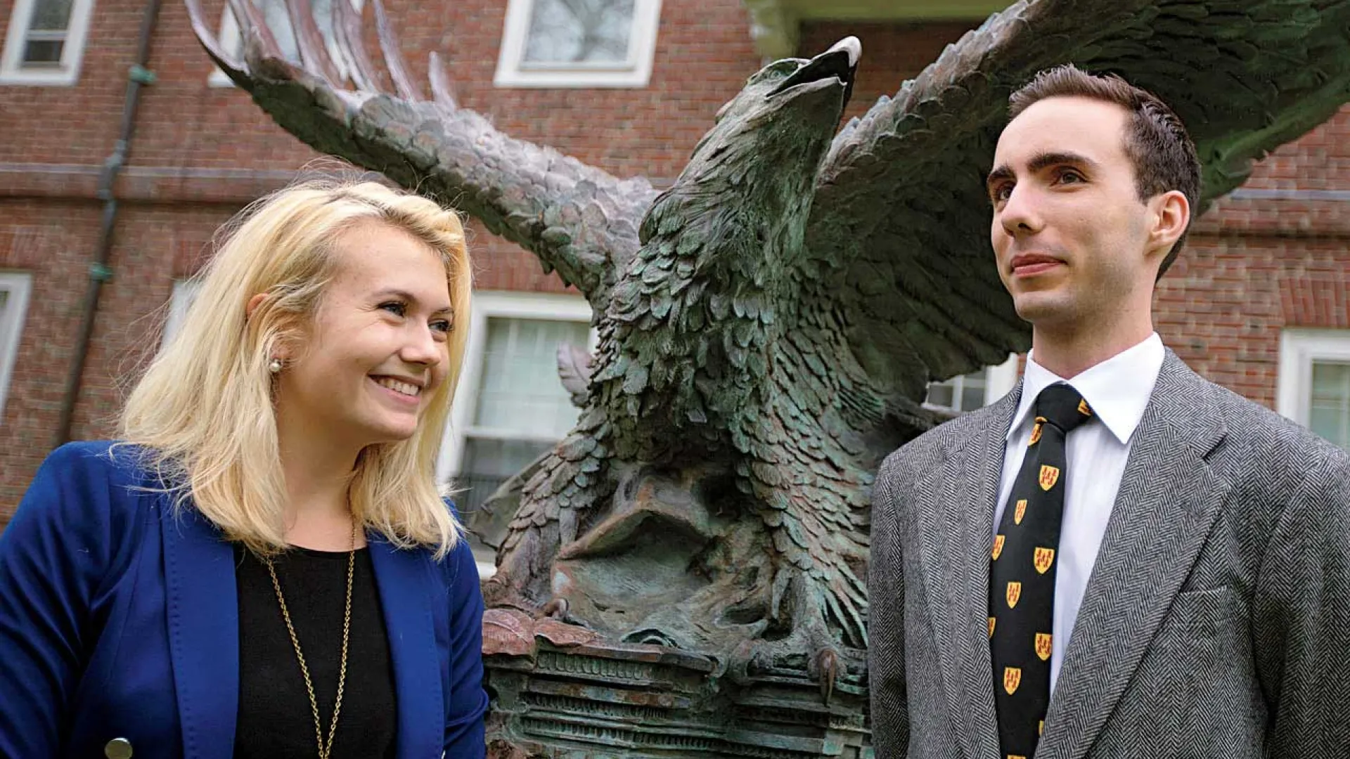 Seniors Rob Gunzenhauser ’15, of Adams House, and Mathilde Montpetit ’15, of Winthrop House, received the Harvard Alumni Association’s (HAA) annual David ’49 and Mimi Aloian Memorial Scholarships at the fall meeting of the HAA’s board of directors. The awards, named for the master and co-master of Quincy House in the 1980s (David Aloian was also HAA executive director), recognize exemplary leadership in enhancing quality of life in the Houses.