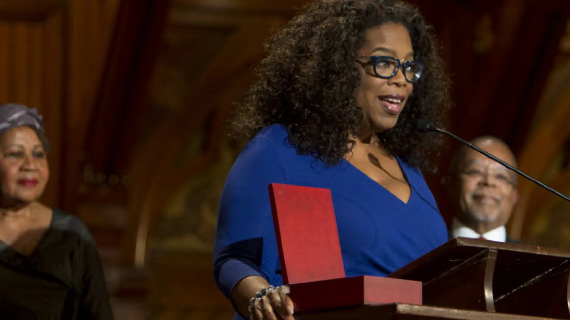 Accepting the W.E.B Du Bois Medal for the late writer and activist Maya Angelou in Sanders Theatre Tuesday evening, Oprah Winfrey, LL.D. ’13, recalled what she said were some of the greatest times and memories of her life: sitting at Angelou’s table, eating biscuits.