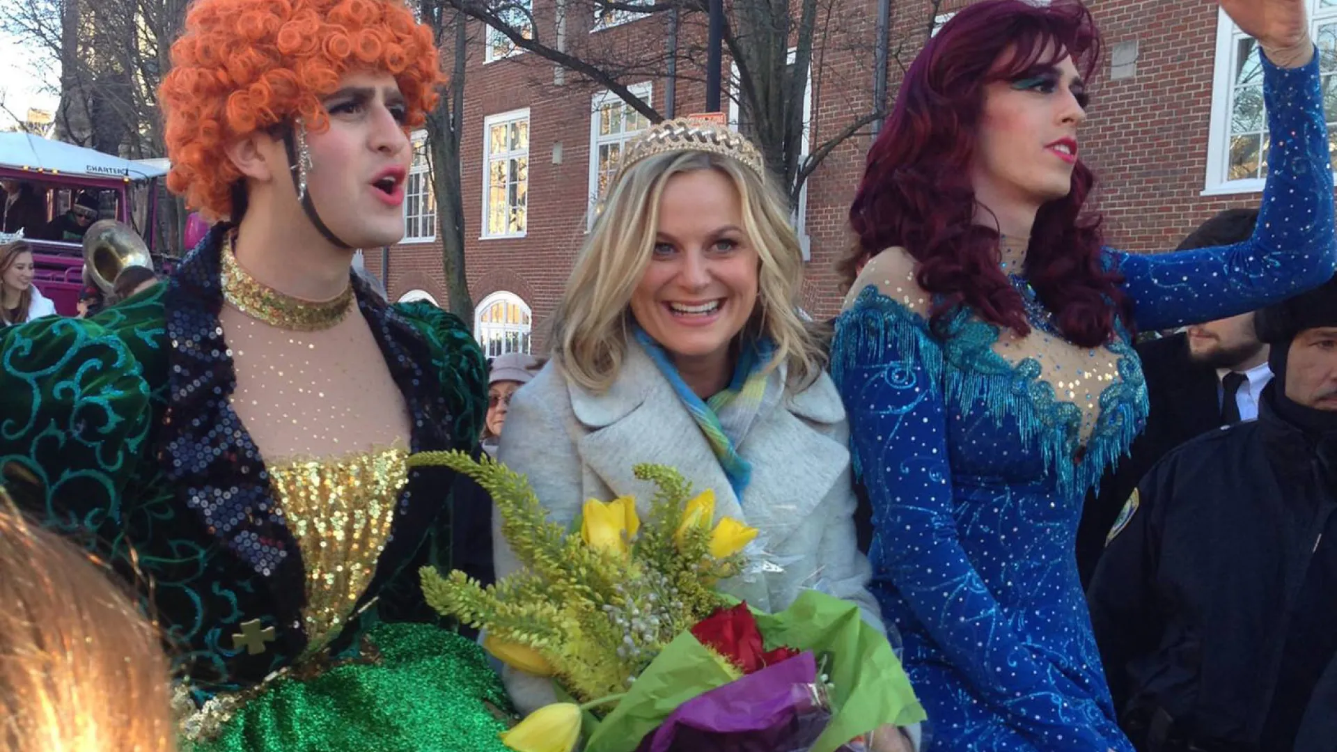 After a parade through the streets of Harvard Square—where students leaning out of windows tossed Poehler stuffed animals and fans chanted her name as they held up signs of the cover of her best-selling book, Yes, Please—the actress took the stage at Farkas Hall. Pointing to an all-male Pudding cast, she said that maybe it was time for Harvard to do a little rethinking for next year. “I know we’re going to see some performances from some beautiful men in drag, but I have to say that it’s unsettling that there will be no women on stage tonight,” she pointed out. “You know it’s time for a change when the Augusta National Golf Club has lapped you in terms of being progressive.” (The audience replied with loud cheers.)