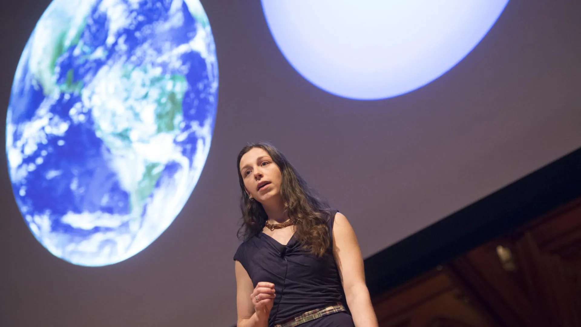 In the realm of anthropology and human evolutionary biology, Bridget Alex asked, “Why are we the only humans left?” She presented research on contact between Neanderthals and modern humans in northeast Europe, the Balkans, and the Levant—regions largely overlooked, she joked, “perhaps because researchers like to go where the wine is best”—and explained other factors skewing scholarly understanding of history. Researchers have often mistaken bones used in butchery with bones gnawed by hyenas, for example, or charcoal from manmade fireplaces with that from natural fires; subsequent contamination may further affect the accuracy of carbon-dating results. Using more rigorous sampling, and new chemical procedures that can detect and remove contaminants, Alex has found that there was a 5,000-year period in which humans and Neanderthals overlapped in the Balkans. We still don’t know why we survived and why they died out, she said, but “These results give us one time and place to look for the answer.”