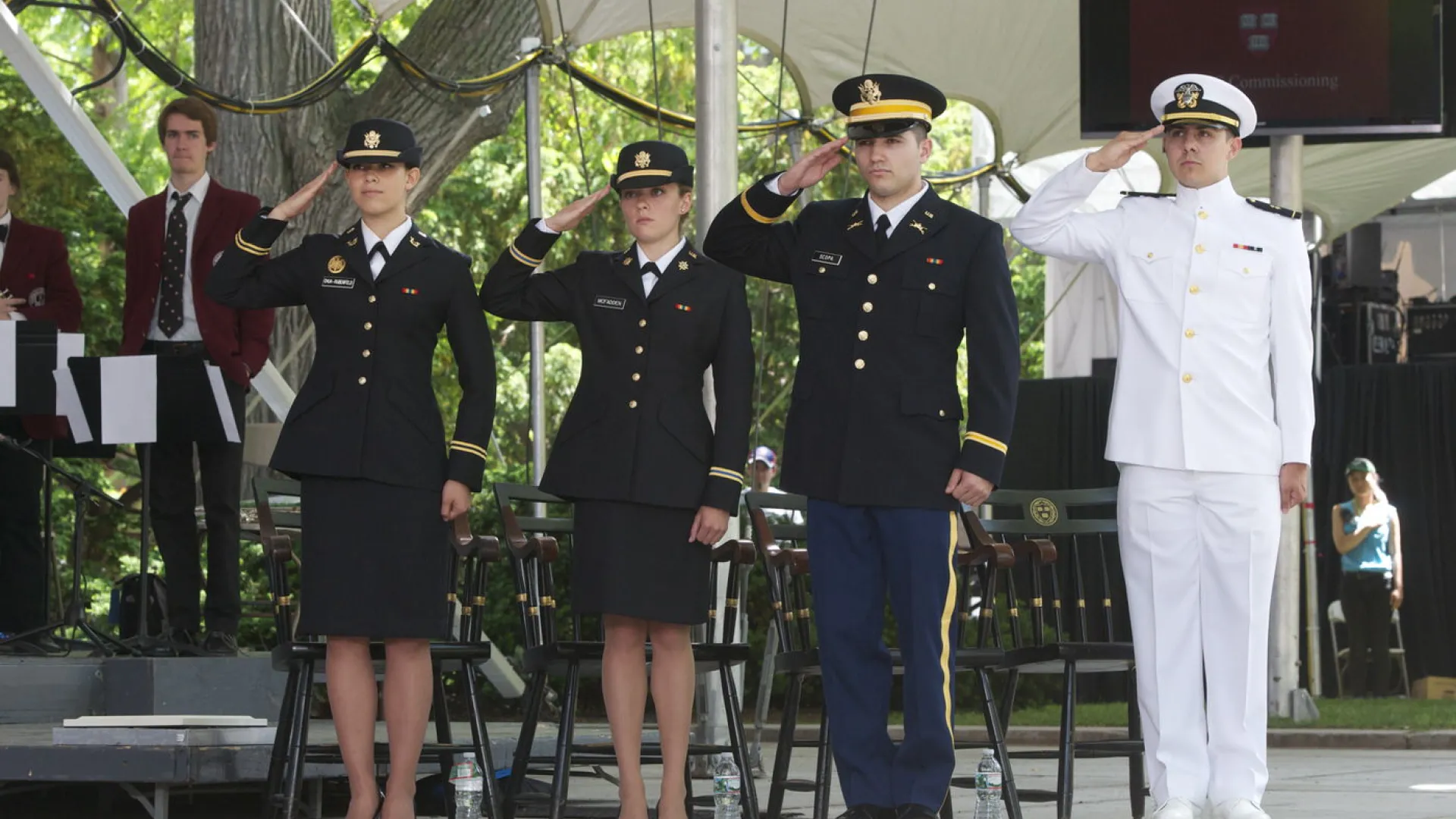 At the Reserve Officers’ Training Corps commissioning ceremony on Wednesday, May 27, three College seniors joined the U.S. Army and a fourth joined the U.S. Navy.
