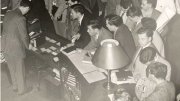 The presence of female readers in what had been a male-dominated intellectual sanctum was also a relatively new phenomenon in the library’s long history. Undergraduate women’s permitted footprint in Widener was until 1949 restricted to a Radcliffe Reading Room that was barely large enough for a single table—located where today’s public elevator is—and female graduate students who could use the main reading room were not allowed to sit down. All women, patrons and staff, had to leave the building by six o’clock in the evening, according to Widener: Biography of A Library by Matthew Battles. Sarah Thomas, Vice President for the Harvard Library, said that a librarian in the 1950s once got a complaint: “There was a woman here and she sat down!”