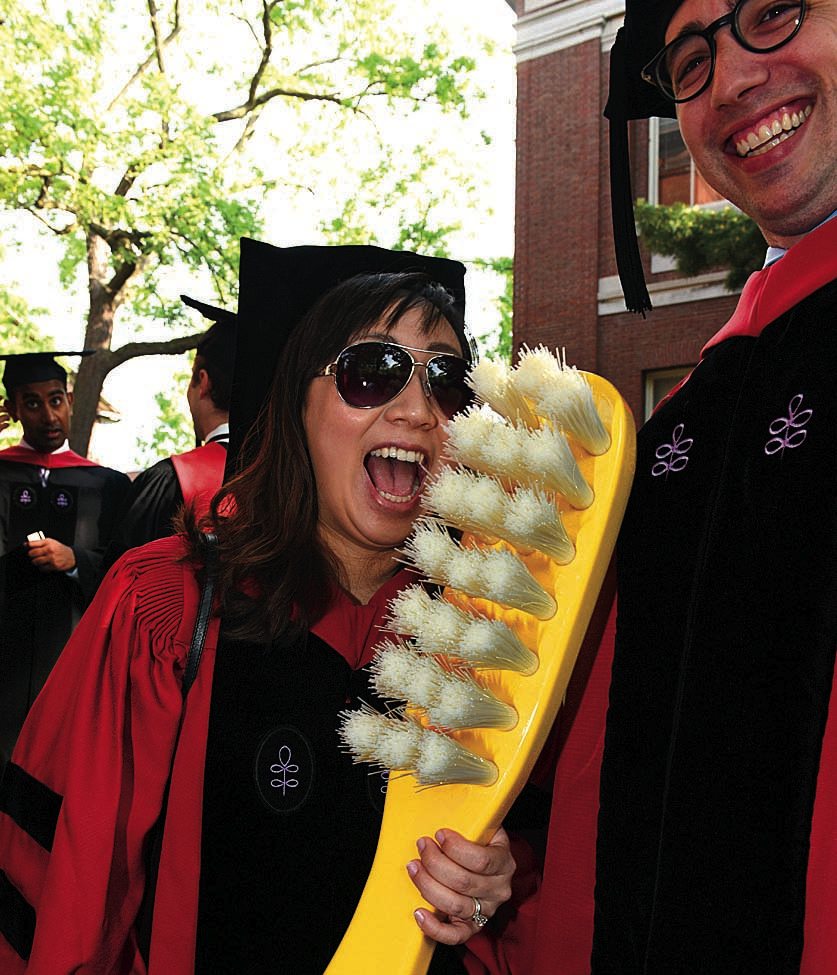 Two honorands represented this commitment at the highest level. Gynecologist Denis Mukwege founded—and despite an attempted assassination, continues to lead—Panzi Hospital, in the Democratic Republic of Congo, to care for the thousands of women in his conflict-plagued country who are subjected to sexual violence and rape, both deployed as weapons of war. And closer to home, in a year when (as Deval Patrick forcefully put it) “The killings of unarmed black men by unaccountable police officers in Ferguson, Missouri, and Staten Island, New York, moved young people and many others to take to the streets to proclaim that Black Lives Matter,” the work of Bryan Stevenson, J.D.-M.B.A. ’85, on behalf of those ill-served by the criminal-justice system, resonated particularly loudly. Faust cited him in her Baccalaureate address, as did Pusey minister Jonathan Walton in his benediction at the end of the Morning Exercises.