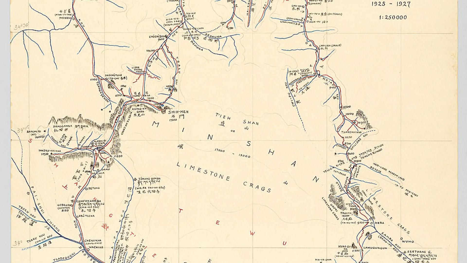 Botany, though, was just one of Rock’s fortes. As an ethnologist, he took hundreds of photographs of the Naxi, an indigenous tribe in Yunnan province, recording their now-lost way of life for both Harvard and National Geographic, and took notes (held by Harvard-Yenching Library) for an eventual 500-page dictionary of their language. His hand-drawn map of his travels through China’s “Cho-Ni” territory, in the Harvard Map Collection, includes more than a thousand rivers, towns, and mountains denoted in both English and (now antiquated) Chinese, and was so well made, the U.S. government used it to plan aerial missions in World War II.