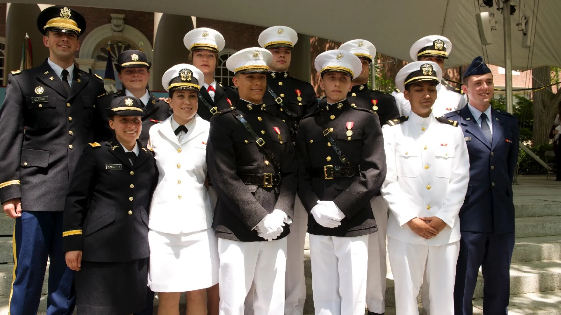 A round dozen of Harvard students—the largest contingent since 2010—took their oaths of office, respectively, as second lieutenants in the U.S. Air Force, Army, and Marines or ensigns in the U.S. Navy on Wednesday morning during Commencement week’s annual Reserve Officer Training Corps joint commissioning ceremony. The four women and eight men included 10 members of the class of 2016, a member of the class of 2015, and a master’s candidate from the Graduate School of Design. Their names appear in the attached program; their immediate future responsibilities range from The Basic School in Quantico, Virginia, for the five new Marine Corps officers and the Naval Nuclear Power School in Charleston, South Carolina, for the three ensigns, to various Basic Officer Leaders Courses for the three army lieutenants in Kentucky, Georgia, and Arizona and pilot training for their Air Force colleague in Texas.
