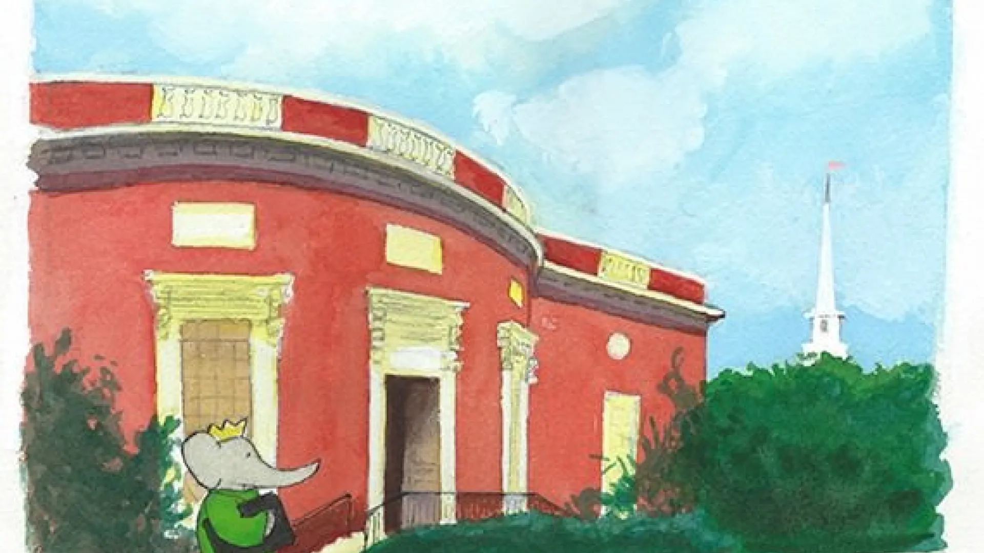 Now 90 and living in Key West, Florida, Laurent and his wife, Phyllis Rose ’64, Ph.D. ’70, a professor emerita at Wesleyan University, recently donated archival work of his father’s to Harvard, and an exhibition displaying some of those materials is on display at Houghton Library through August 31. It is not the first time Babar has come to Harvard: in the 1965 book Babar Comes to America, the elephant pays a visit to Cambridge, where he chats with students, receives an honorary doctorate, and hangs out in the Harvard Lampoon building.