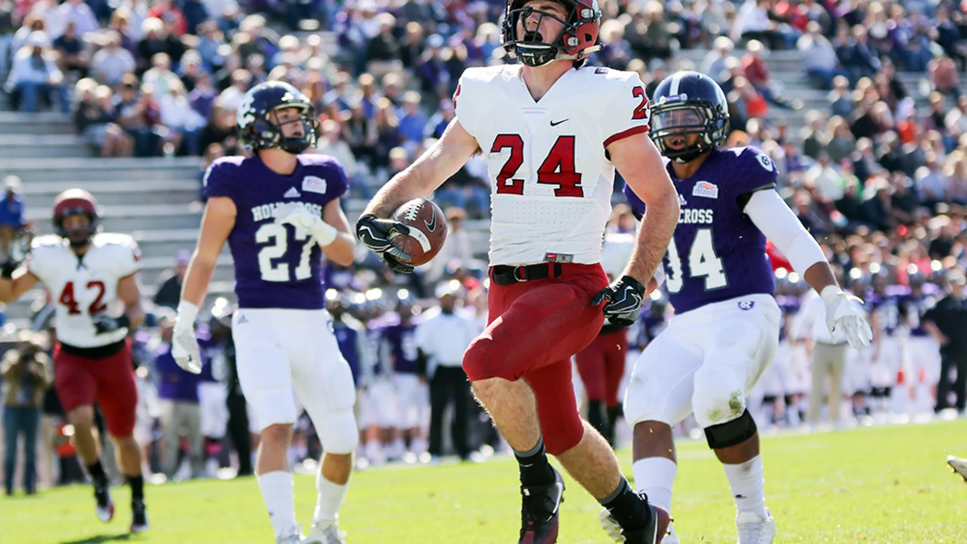 That was not only the only mark of perfection that was a casualty of the Harvard football team’s 27-17 loss to Holy Cross this past Saturday at Fitton Field in Worcester, Mass. Poof also went two 16-game winning streaks. One was for road games, and it was an Ivy and national best; the last previous loss away from the Stadium had come on November 10, 2012, at Penn by a 30-21 score. The other was for non-league games. In that instance also, on September 17, 2011, Holy Cross had been the victor, by a 30-22 score.