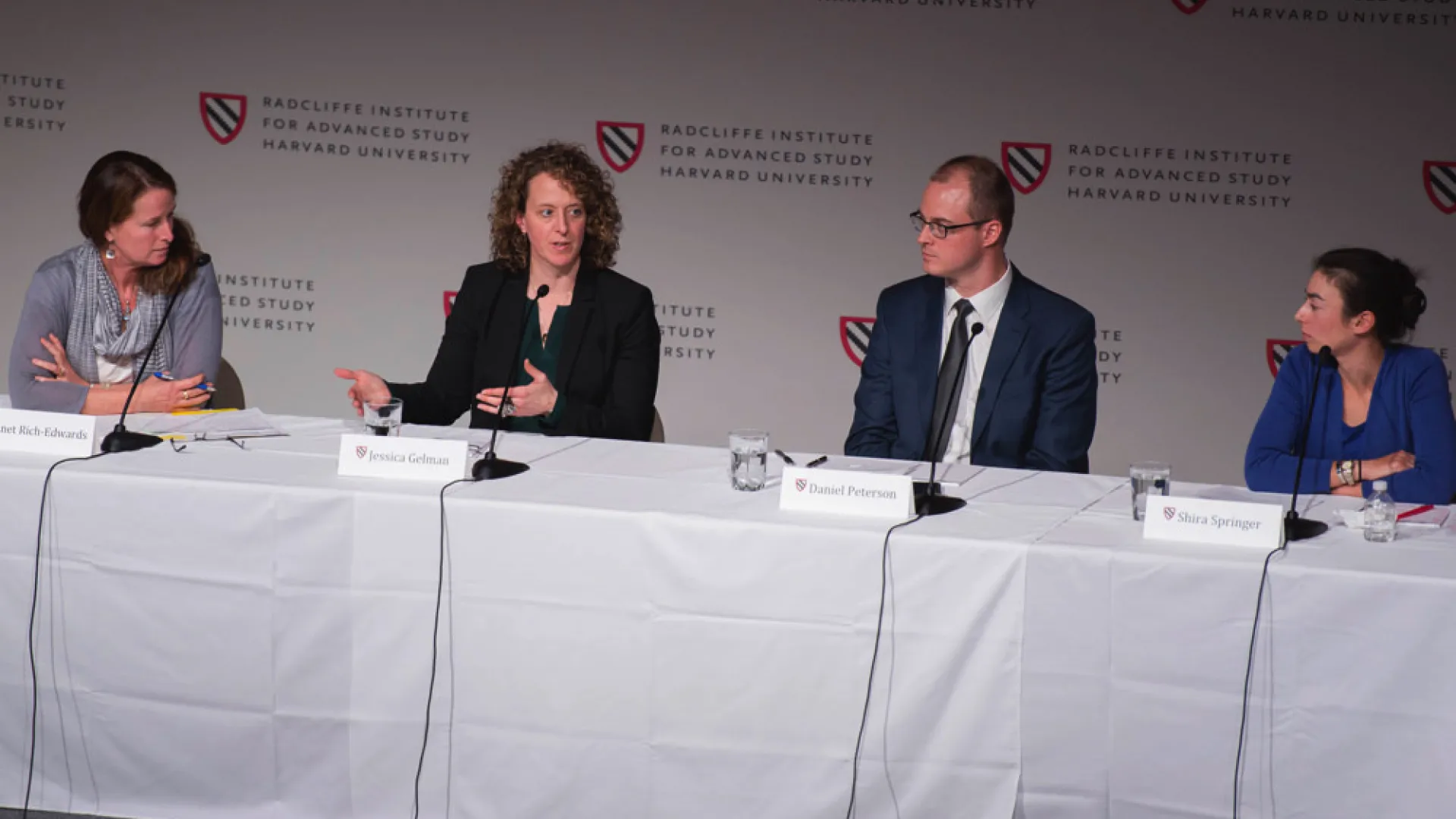 And what about the Harvard women’s soccer team? Somewhere in the midst of the afternoon’s discussion, Rich-Edwards wondered aloud when their next game might be. “Tomorrow!” came the shouted answer from multiple voices in the audience. And then, another shout: “One o’clock!” And indeed, on Saturday afternoon, the women’s team played. They were contending for the Ivy League title. In a double overtime match that capped an undefeated conference season and earned them a spot in the upcoming NCAA tournament, they won it 2-1.